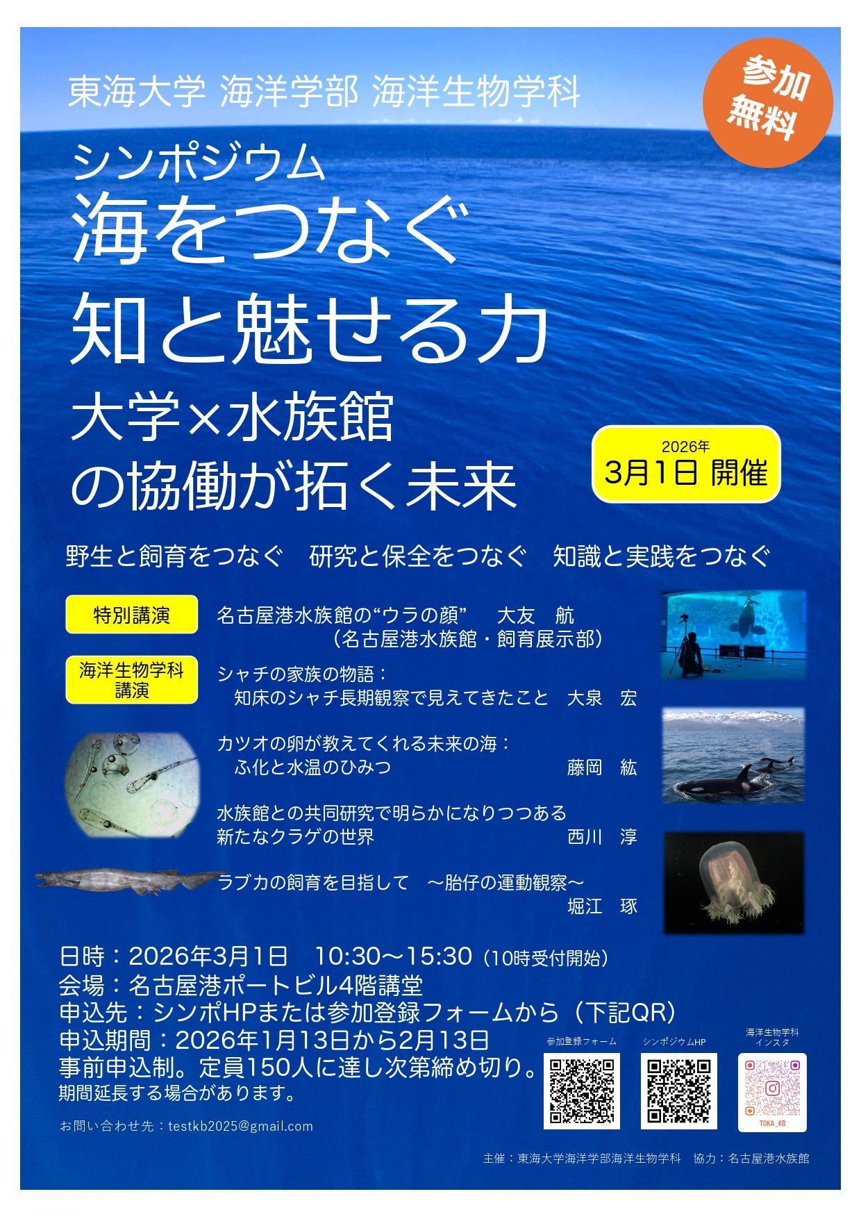 海洋生物学科では、2026年3月1日(日)にシンポジウムを開催します。