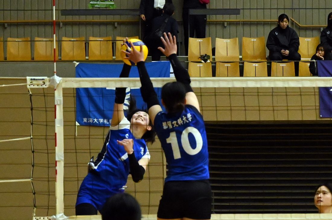 「実は高校までで競技はやめようと考えていたのですが、札幌キャンパス女子バレー部からお誘いをいただいて、発展途上のチームで自分の力を出して貢献し、勝てるチームにしたいと大学進学を決めました。目標であるリーグ戦優勝や全日本インカレ1勝には届きませんでしたが、大学4年間を通じて戦術や相手に合わせたプレーの大切さを学べたのは財産です。後輩たちには試合中の声かけの重要性を伝えられたと思います。来年度以降も上位を目指して頑張ってもらいたい。私もVリーグで勝てるよう自分の限界に挑戦しながら成長を重ね、チームの力になれるよう日々努力していきます」と力強く語っています。