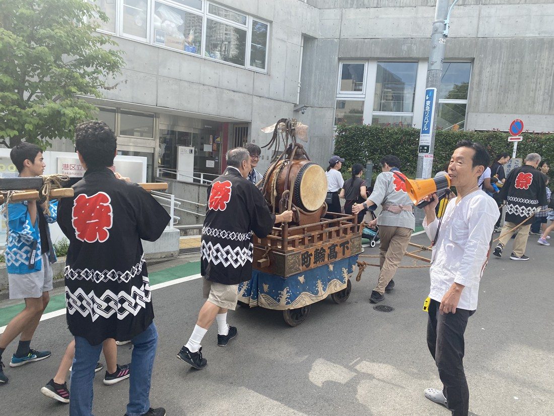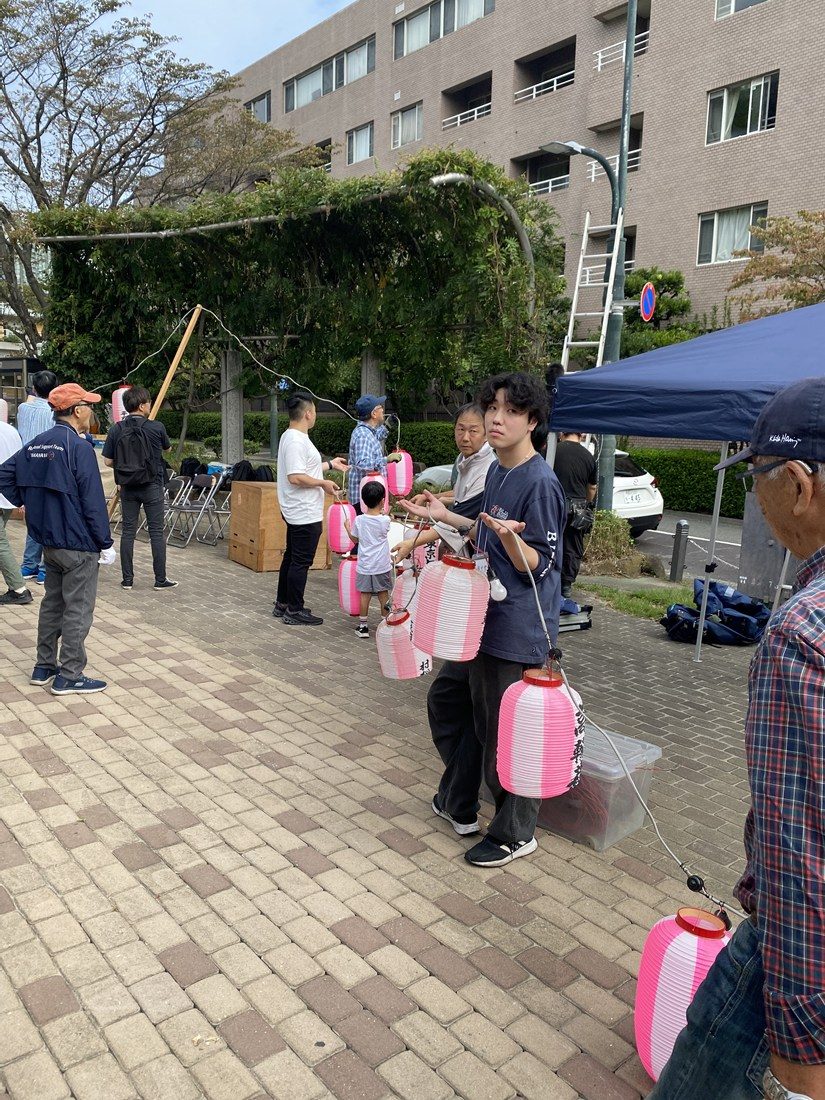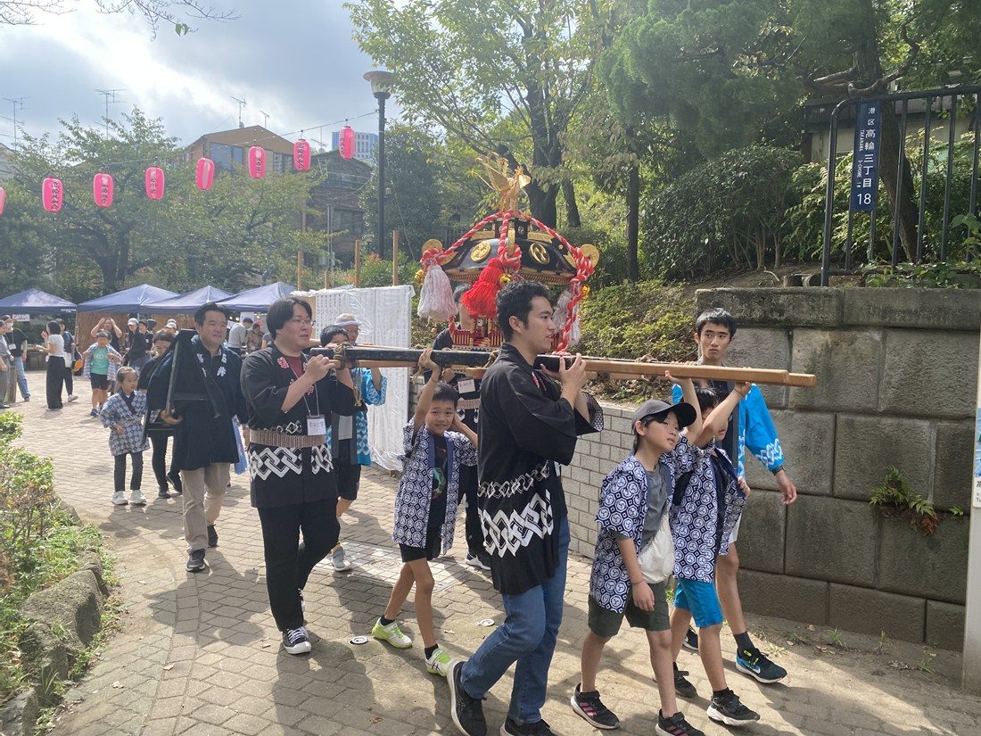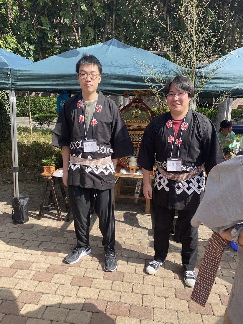 品川キャンパスの学生が、10月4日と5日に東京都港区・高輪公園で開催された「高輪共和会夏祭り」にボランティアとして参加しました。品川キャンパス周辺は閑静な住宅街で、長い歴史をもつ町会が活動しており、1949年に設立された高輪共和会もその一つです。夏祭りは同会の一大イベントで、公園前にテントが張られ、会員が焼きそばやたこ焼き、かき氷などの屋台を出店し、子ども神輿や山車がにぎやかに町内を練り歩きます。