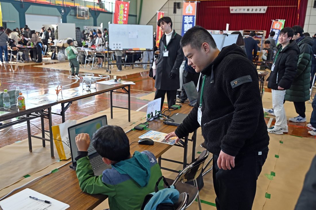 熊本キャンパスで活動するToCoチャレ「先端技術コミュニティACOT」が12月7日に、熊本県・多良木町町民体育館で開催された「サイテク祭」にブースを出展しました。子どもたちにものづくりや体験活動の機会を提供することを目的としたイベントで、ACOTは16回目の参加となります。会場には親子連れなど多数の来場者が訪れました。