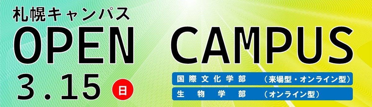 2026年3月15日(日)に札幌キャンパス(国際文化学部、生物学部)のオープンキャンパスを開催いたします。