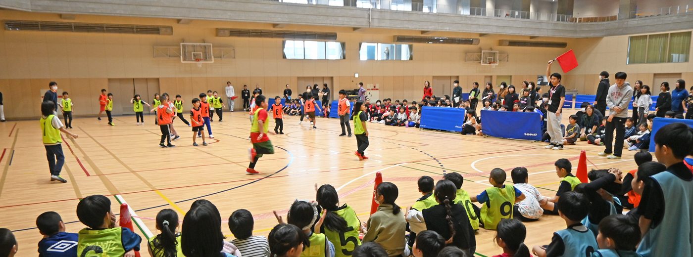 札幌キャンパス第一体育館(TOKAI ARENA)で1月18日に、札幌市南区内にある児童会館のドッジボール大会が開かれ、国際文化学部地域創造学科の島崎百恵助教のゼミナールに所属する3年次生と、島崎助教が監督を務める男女ハンドボール部の選手が運営をサポートしました。この大会は、南区内の児童会館に通う小学生たちが日ごろの練習の成果を発揮するとともに、他地域の子どもたちと交流を深める機会にしようと毎年開催されており、本キャンパスでは今回で4回目の実施となりました。