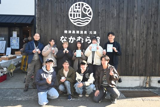 人文学部の学生有志がこのほど、静岡県焼津市の㈲なかむら館と共同で、温泉水を活用した「元湯なかむら館の温泉石けん」を開発。昨年12月7日に、「焼津温泉元湯なかむら館」で開催されたマルシェで販売がスタートしました。