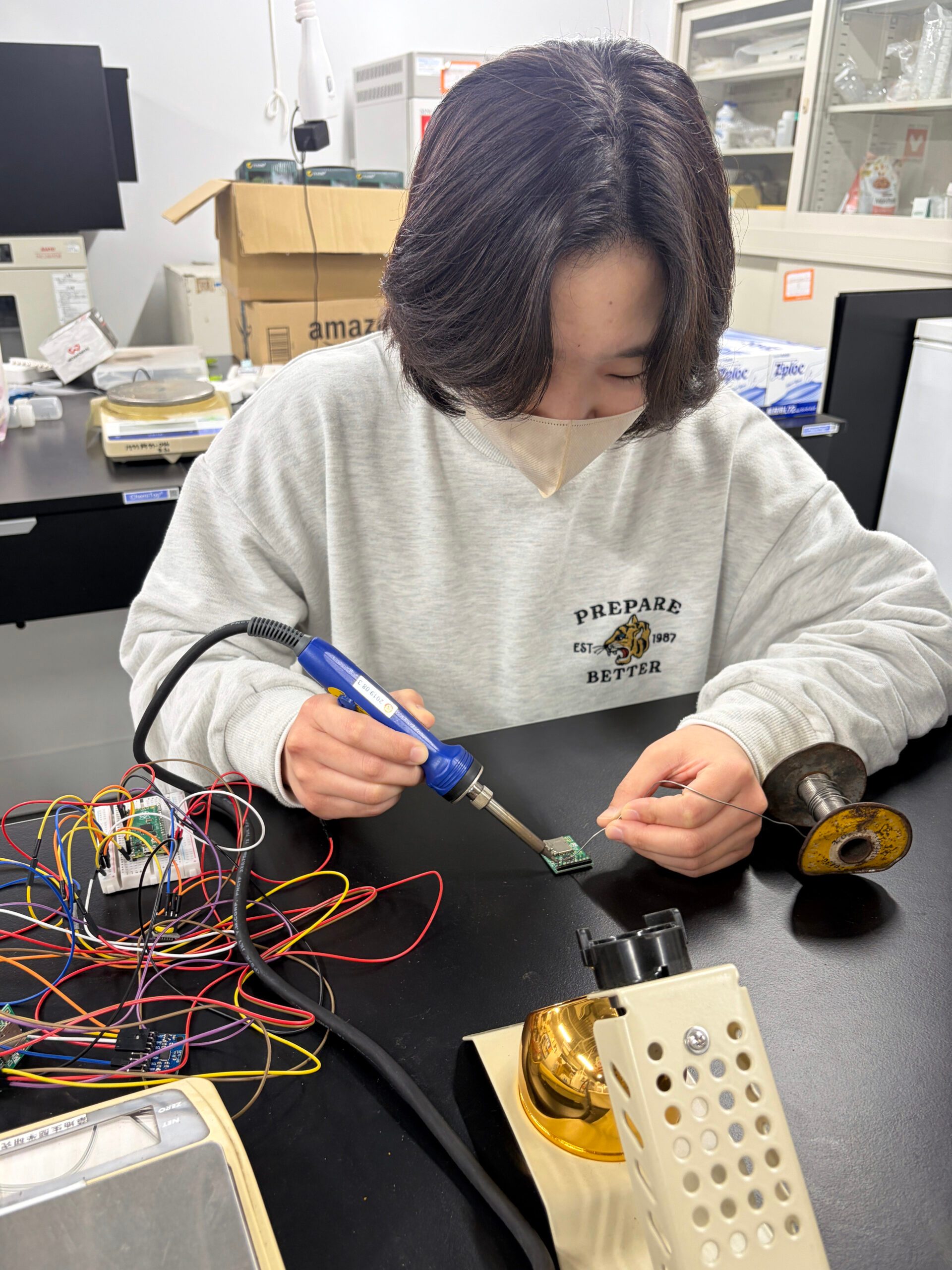山口県出身の賀來さんは、「動物のことを学びたい」と農学部動物科学科に入学し、3年次生の夏に研究室を決める際に「熊本ならではのあか牛について研究してみたい」と動物生理生態学研究室に入りました。「あか牛の目線で半自然草地の重要性を証明し、人工草地を増やすことなく半自然草地を維持することが、文化的景観や生物多様性の維持につながると感じています。ドローンを使った草地の栄養状態の把握や安価で行動を分析できる装置を開発できれば、阿蘇地域の畜産農家さんの手助けにも繋がります。どの研究もまだ課題はあるので、採択は終わりますがもう1年研究を続けてよりよい結果を求めていきたい」と話しています。