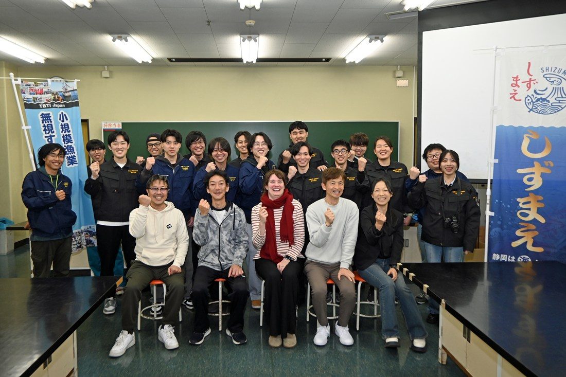 海洋学部水産学科の李銀姫准教授が2月5日に、静岡キャンパスで「北欧アイスランド水産業と魚食文化を学ぶ国際交流会」を開催しました。漁業管理や社会学などが専門の西部フィヨルド大学センター所長のキャサリン・チェンバース氏を講師に招き、アイスランドと日本における水産業や魚食文化について、両国の理解を深めようと李准教授が企画したもの。2部制で行われた当日は、李准教授の研究室の学生や地域の漁業関係者ら25名が参加しました。
