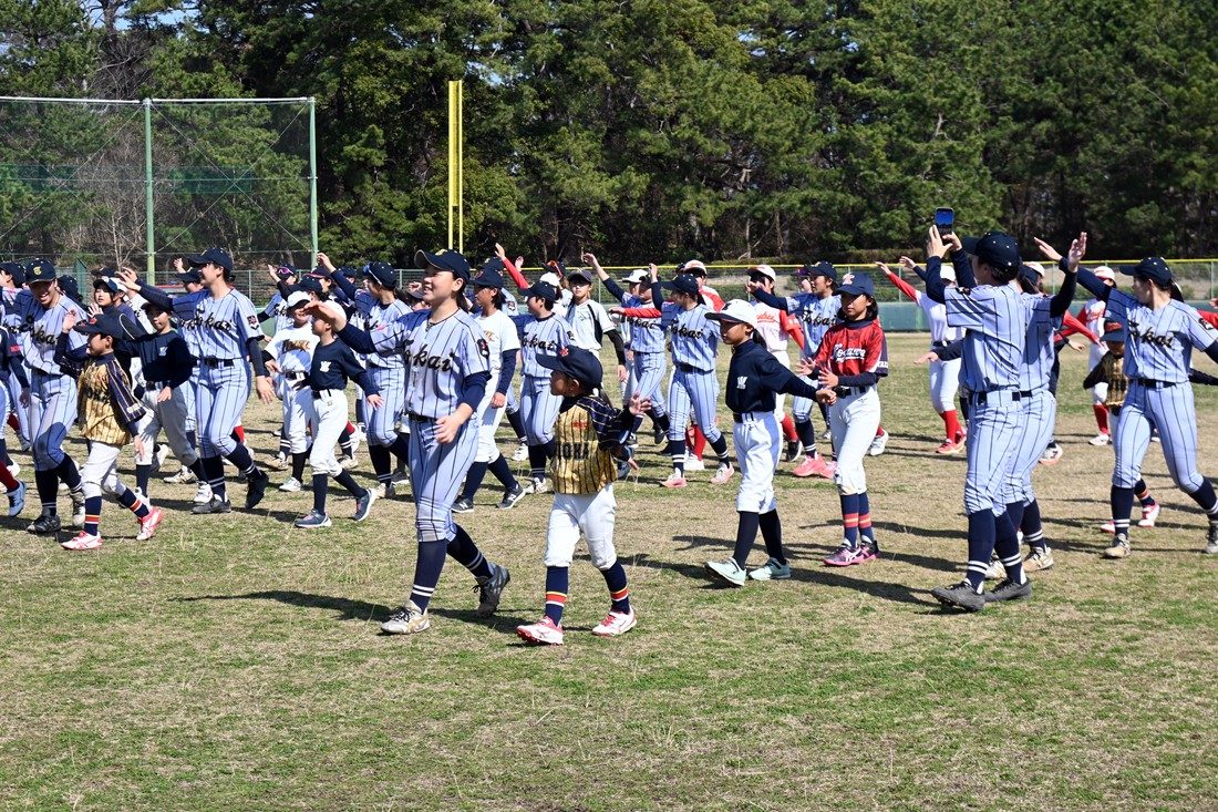 静岡キャンパス女子硬式野球部が2月28日に東海大学松前球場で、小中学生対象の「野球教室」を初開催しました。小中学生の女子野球選手の技術向上を図るとともに、高校・大学の選手たちが将来の選択肢として指導者の道を考えるきっかけになるようにと企画したものです。当日は、付属静岡翔洋高校女子硬式野球部の選手たちも加わり、静岡県内の女子チームや男子チームに所属する女子選手を中心に44名が参加しました。