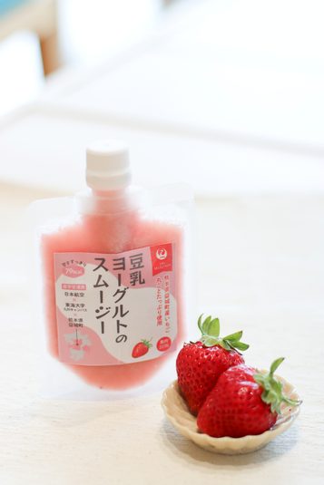 本商品は、食品バイオ化学研究室が約1000種の中から選び抜いた乳酸菌「Pediococcus pentosaceus TOKAI 759m(通称:ソイペディオ®菌)」で作った豆乳ヨーグルトと、益城町産のいちご30%を使用することで、さっぱりとしながらもしっかりとした果肉感で濃厚な味わいとなっています。