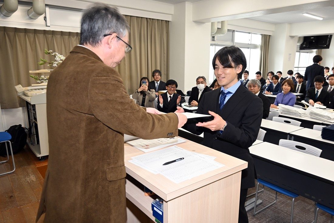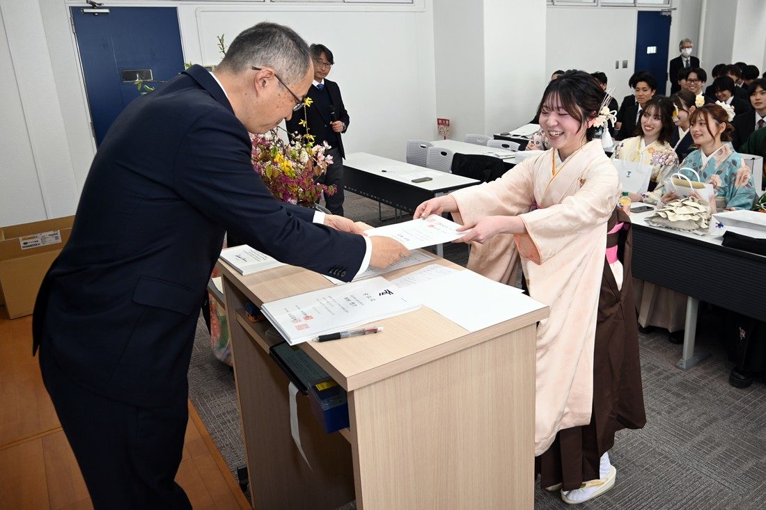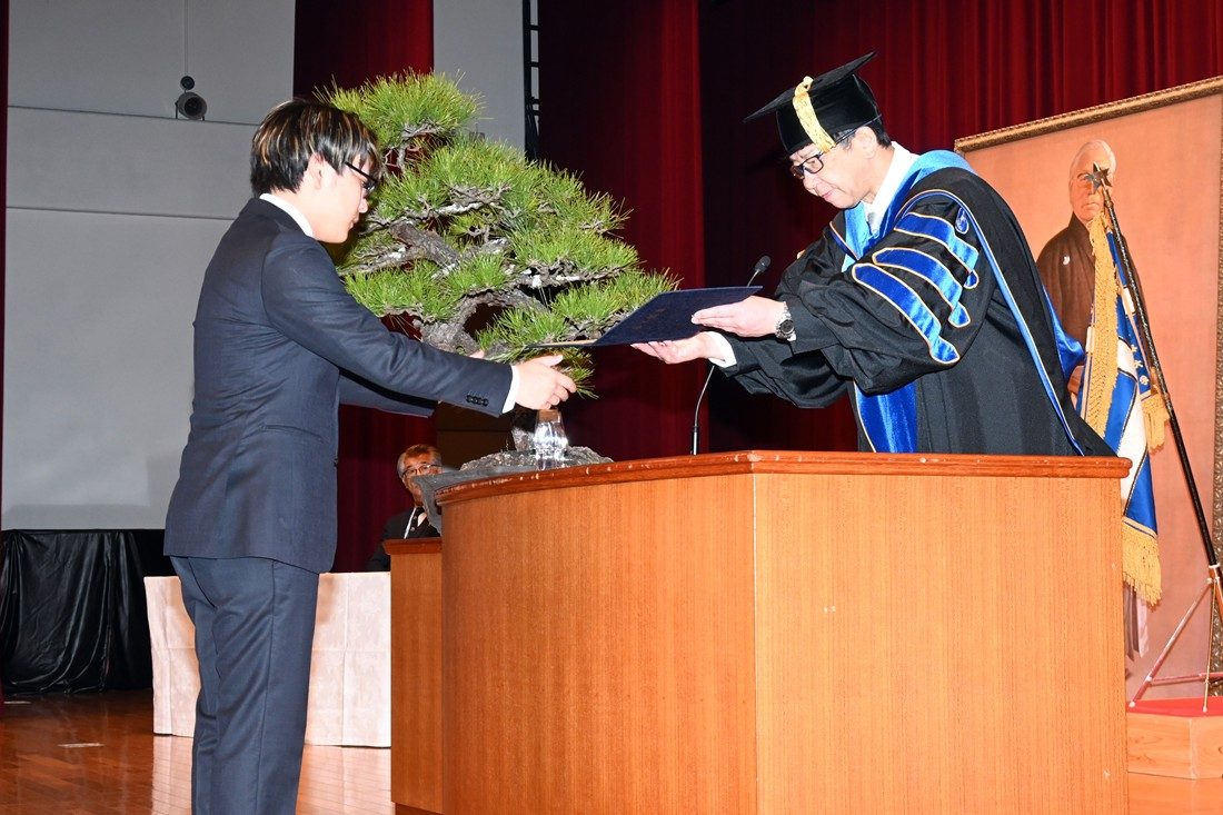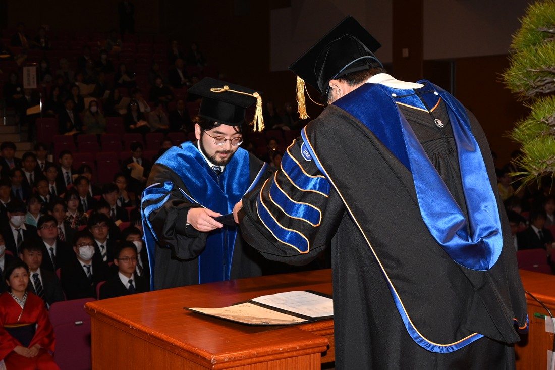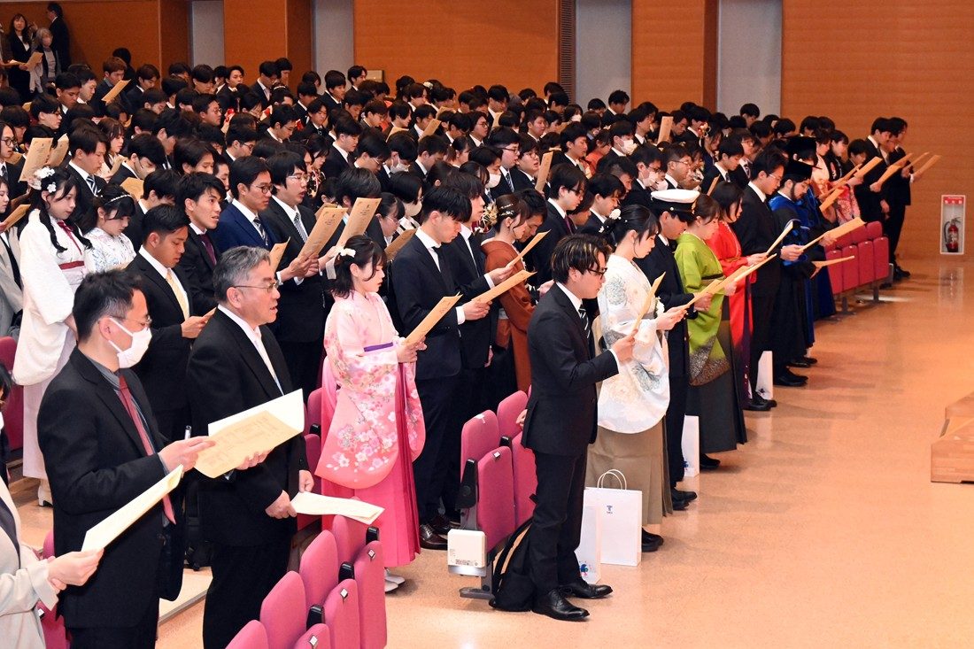 静岡キャンパスで3月23日に、2025年度秋学期学位授与式を挙行しました。今年度は、大学院総合理工学研究科総合理工学専攻(博士課程)2名、大学院海洋学研究科(修士課程)26名、海洋学部293名、人文学部149名の計470名に学位記を授与しました。