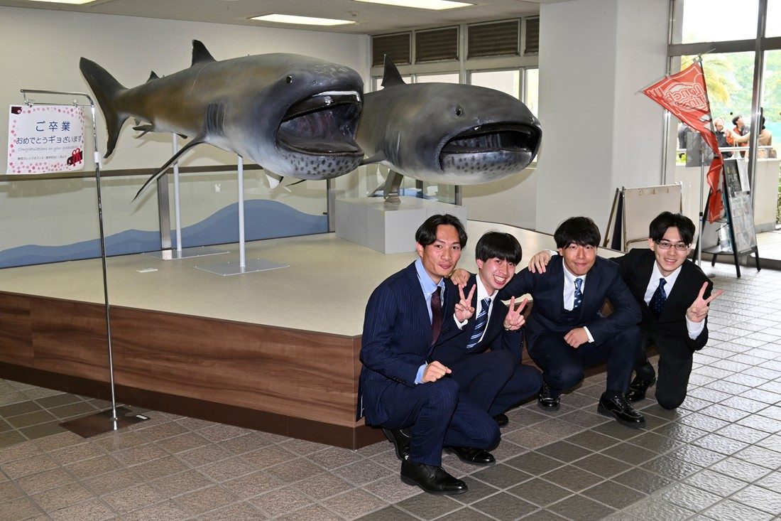 式典後には、学科・専攻ごとに分かれて学生一人ひとりに学位記を授与。また、キャンパスの各所にはフォトスポットを設置し、学生たちが晴れやかな表情で記念撮影をする姿も見られました。卒業生たちは、「大好きな海に囲まれて最高のキャンパスライフを送ることができました。同じ趣味を持つ友人や、優しく多くの知識を教えてくれた先生方との出会いは財産です。社会に出てからも美しい海を守り、その魅力を多くの人に伝えたい」「人文学部の1期生として、先生方とともにたくさんの挑戦を続けた4年間になりました。学外でのフィールドワークにも数多く取り組み、静岡県の魅力に触れる中で、この地域の良さをもっと多くの人に知ってもらいたいと感じるようになりました。卒業後は、大学での学びを生かし、その魅力を発信し続けていきたい」と話していました。