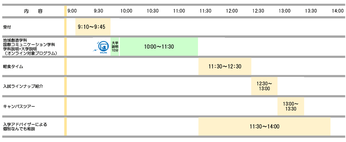開催時間は、来場型・オンライン型により異なります。タイムスケジュールをご覧ください。