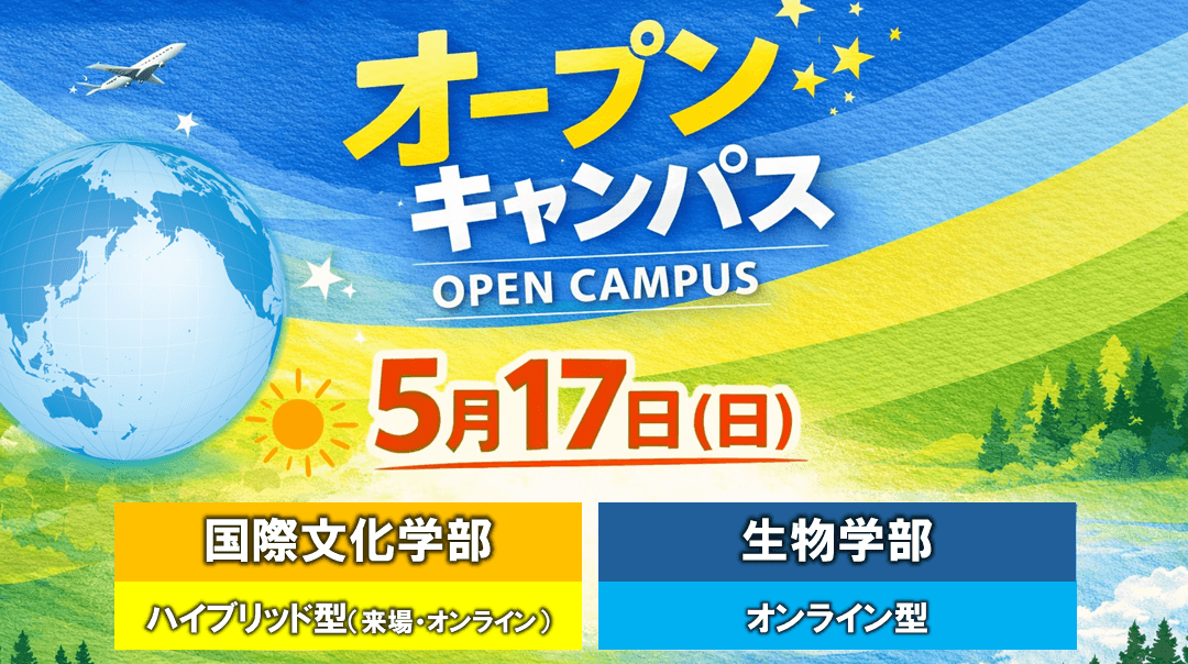 2026年5月17日(日)に札幌キャンパス(国際文化学部、生物学部)のオープンキャンパスを開催いたします。