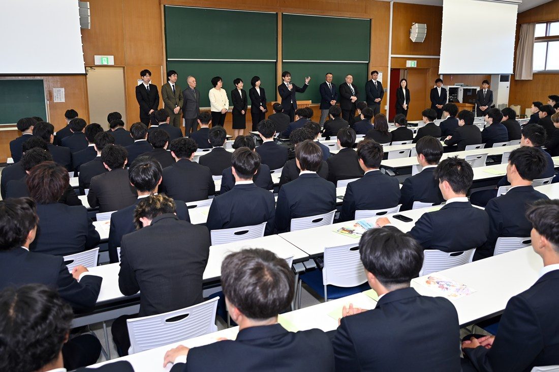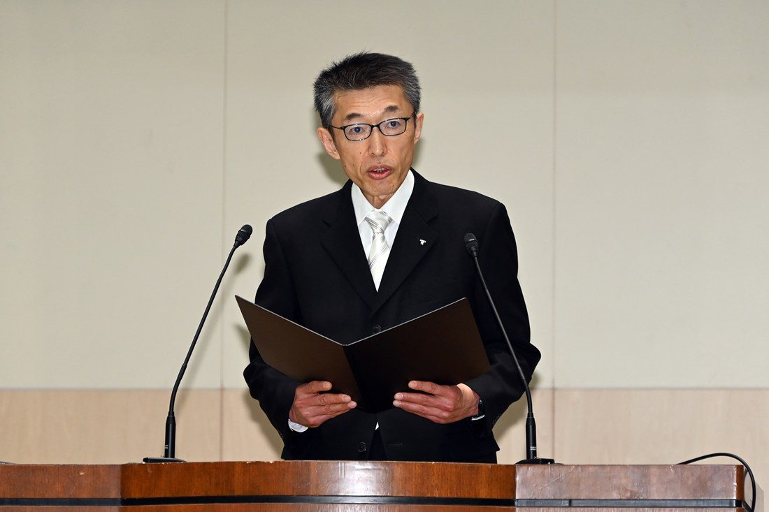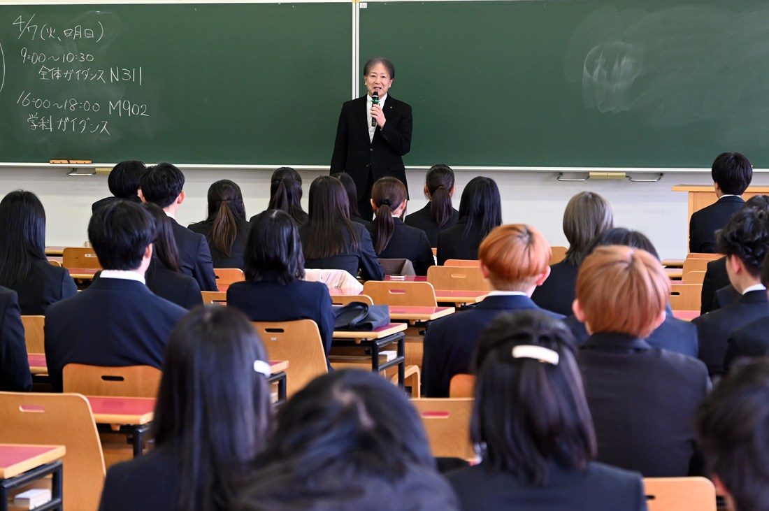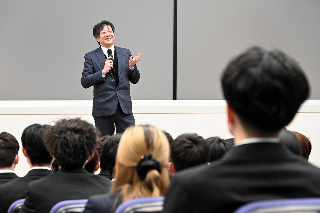 式では、本キャンパスの吹奏楽部の演奏で建学の歌を斉唱、続いて木村英樹学長が入学許可を宣言し、式辞では新入生と保護者らにお祝いを述べると共に、本学の概要や沿革をはじめ創立者・松前重義の功績などを紹介。続けて松前が本学の母胎である望星学塾に掲げた「若き日に汝の」から始まる「思想を培え」「体軀を養え」「智能を磨け」「希望を星につなげ」の4つの言葉、本学の教育指針である「自ら考える力」「集い力」「挑み力」「成し遂げ力」の4つの力についてそれぞれ紹介。「自ら考える力は、フェイクニュースが流れ、生成AIが次から次へと本物と見まがう画像などを創り出す中、何が正しいものであるのか見抜く力を養ってもらいたい。また、現代社会は一人の力で何かを生み出せる社会ではなく、高度に発達した科学文明において多様な力を一つに集めて一つの形にしていかなくてはならず、多様な課題に多くの人々と協力して解決する力が求められています。さらに何かを成し遂げていくためには一日一日、小さなチャレンジを積み重ねていかなくてはなりません。大学4年間は長いようで短いものです。失敗を恐れることなく、少しずつでも挑戦を続けてほしいと願っています」とエールを送りました。