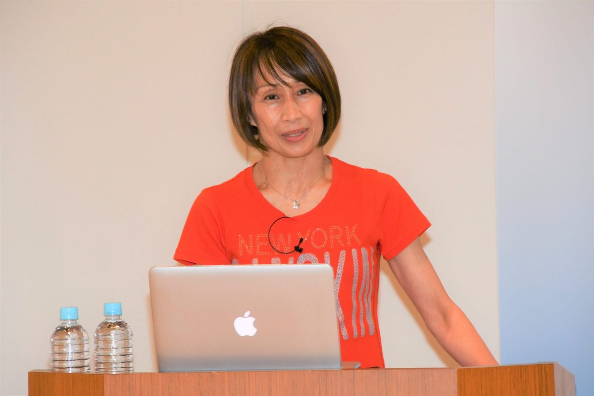 続いて、参加者に背骨コンディショニングの基礎理論となる「仙腸関節可動理論」、「代償姿勢」、「神経牽引理論」についてレクチャー。骨盤の後面にある仙腸関節の動かし方をはじめ、坐骨神経の伸ばし方、頸椎の整え方などについて解説と実践を交えながら指導し、「背骨や頸椎のずれの矯正は今日のテーマである睡眠障害に悩む人の症状の改善にもつながっています。背骨コンディショニングは、背骨の土台であり、上半身と下半身をつなぐ唯一の骨である仙骨をはじめ背骨全体の歪みを整え、様々な不調を改善する運動プログラムです。ぜひ日常的に実践することで良い睡眠につなげてもらえれば」と話しました。