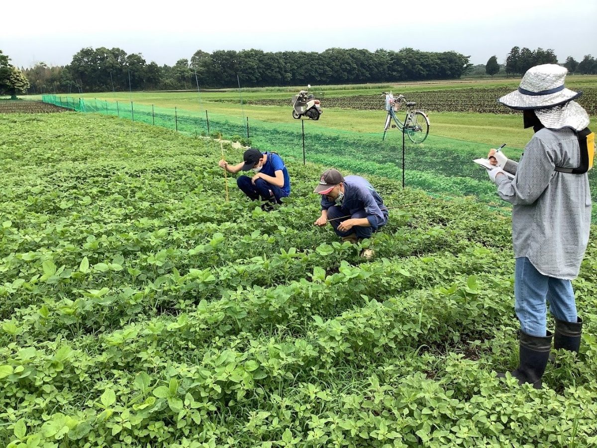今回は技術講習として「飼料作物の栽培試験方法に関する講習」を実施しました。応用動物科学科※動物栄養学研究室所属学生8名が参加し、飼料用ダイズの栽培試験方法を学びました。
