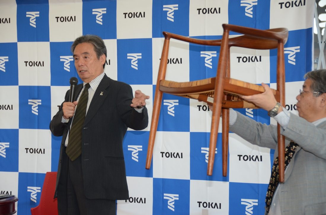 織田名誉教授は講演でまず、テーマである椅子とは切り離せない「デザインとアートの違い」について解説。「デザインとアートは重複する部分もある言葉ですが、アートは基本的には作家が納得すれば成立するものです。また、作品を見てどのように判断するのか人によって違います。さらにアートではその作家性、個性が非常に重んじられます。一方デザインは、日常生活に密接にかかわっていることから、デザイナーはクライアントの意向や消費者のニーズをきちんと理解し、自分勝手な解釈や表現は許されません」と話しました。また、日本人の生活に椅子が取り入れられていく過程やそれに伴う日本の家具業界の進化、家具デザイナーの役割について紹介しました。