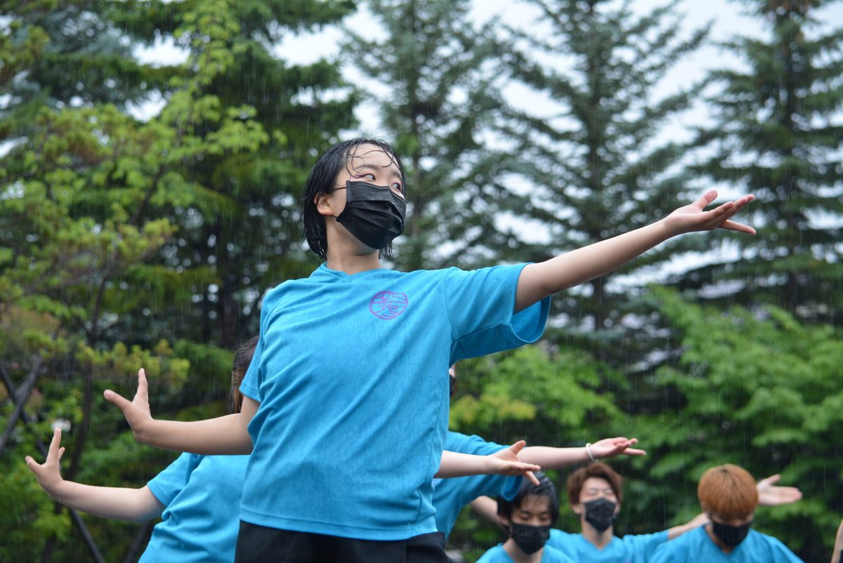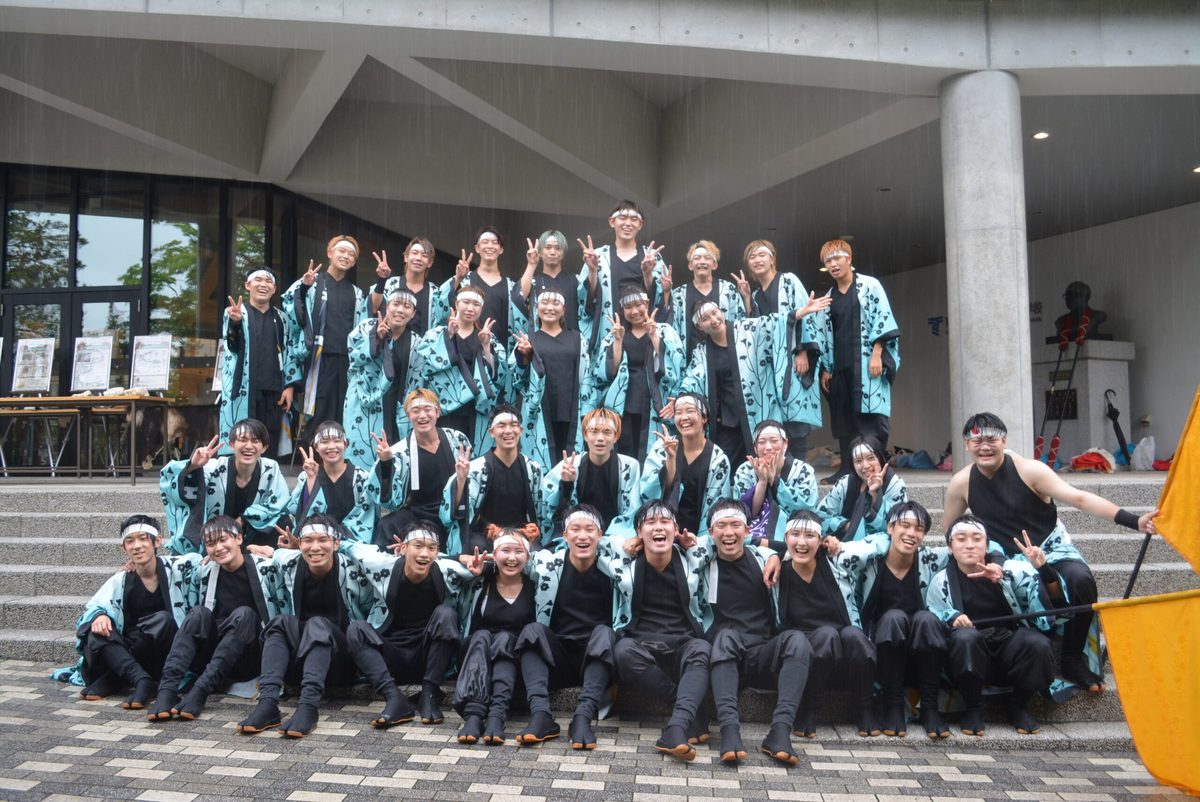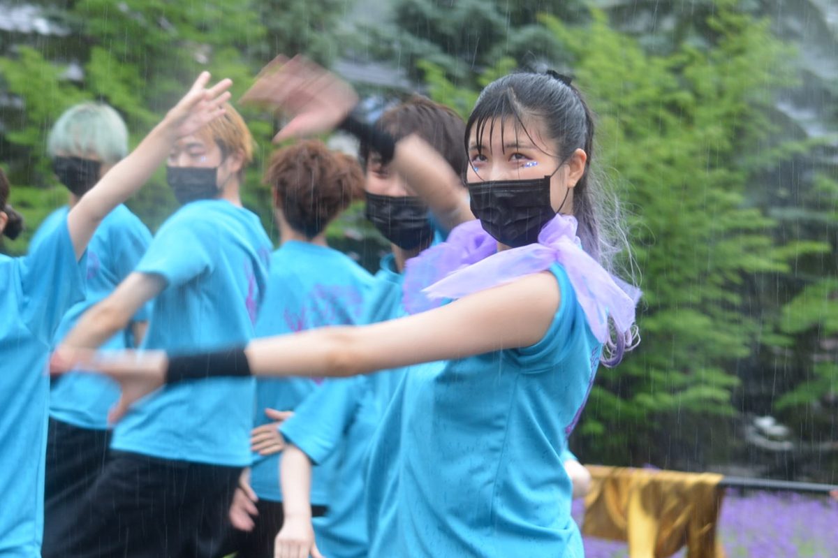 国際文化学部デザイン文化学科の中尾紀行教授と笹川寛司准教授が担当する「デザインプロジェクト」の授業を履修している学生たちは、木や皮を使った作品を販売。マグネットで取り付けられるL字型の飾り棚を制作した寺嶋未佑さん(3年次生)は、「デザインから制作、展示、販売まですべて自分の手で行うのは初めての経験でしたが、説明を聞いたお客さんが笑顔で購入してくれたときは涙が出そうになるぐらいうれしかった」とコメント。「YOSAKOI演舞」を披露した学生サークル「東海大学~祭屋~」代表の大島海杜さん(生物学部生物学科3年次生)は、「3年ぶりにキャンパス内で演舞できる場をいただいたので、雨の中でも精いっぱい踊ろうと臨みました。4年次生が企画した『想祈巡(しきめぐる)』はコロナ禍で発表の場がなかったのですが、やっとお披露目できてよかった」と話しました。