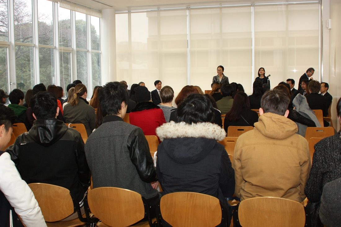 国際教育センターでは2015年度秋学期「日本語教育特別講座」修了式を1月29日に、湘南キャンパスのコムスクエアで行いました。本学では、海外の大学との学術協力協定に基づき、約30カ国・地域から日本語研修生を受け入れており、10カ月から半年の間で日本語と日本文化などを学ぶ研修プログラムを実施しています。