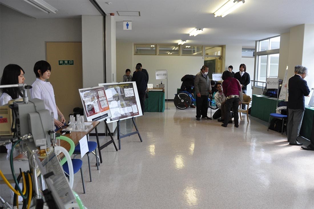 来場者からは、「高齢者がさらに増えていく中で、将来お世話になるかもしれない医療・福祉機器の進歩の話は非常に興味深く、最初から最後まで面白くうかがわせていただきました。また、教室前に設置されていたブースでは、医療福祉工学科がどんなことを勉強しているか知ることができました。セミナーで得た知識を周りの家族や友人にも伝えたい」といった声が聞かれました。