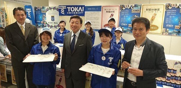 東海大学では、5月26日から5月31日まで新宿髙島屋で開催された第9回『大学は美味しい!!』フェア(主催:NPO法人「プロジェクト88」)に、大学オリジナル商品の販売ブースを出展しました。この催しは、全国各地の大学が独自に開発した大学ブランド商品や大学と地域が連携して生まれた商品、各大学のアイデアが生かされた商品などを一般向けに展示販売するイベントです。