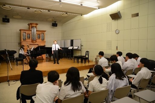 交流会では、最初に本学の声楽と作曲、器楽の各コースに所属する学生が楽曲を披露。その後、KMITLの学生がタイで有名な楽曲や谷村新二作曲の「花」などを演奏しました。最後には、教養学部の戸谷毅学部長が、「本学とKMITLはこれまでにも、工学分野を中心に交流を深めて来ました。それがさらに音楽分野に広がり、学生同士の交流が今後深まることを期待しています。これからも頑張ってください」と激励しました。また前日の24日には、音楽学課程で開講している音楽編集の授業や施設の見学も実施しました。