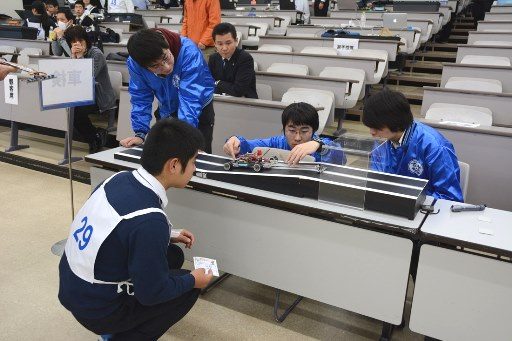 基盤工学部の学生やACOT、メカトロマイスターのメンバーは副審をはじめ車検や記録用の写真や動画の撮影などで運営にも参加。小中学生を対象とした「マイコンカーラリー・プログラミング入門教室」も開催し、メカトロマイスターの中村愛さん(同)は、「小学生に教える難しさを感じたが、自分でプログラミングした車体が走ると笑顔を見せてくれたのでよかった」と話していました。