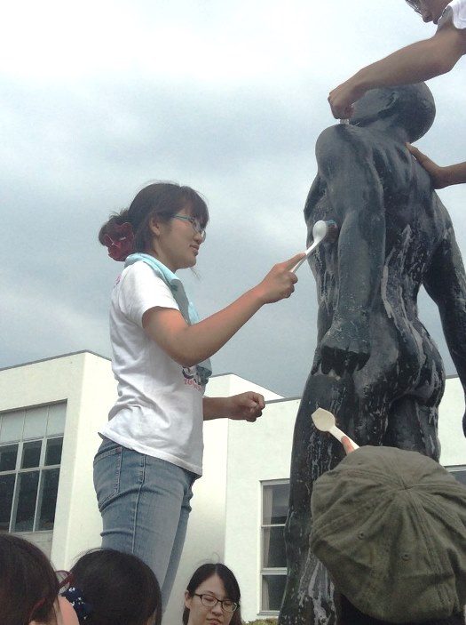 湘南キャンパスで7月30日に、学生や市民を対象としたイベント「彫刻を触る☆体験ツアー!!」を実施しました。本キャンパスには、北村西望作「松前重義胸像」や舟越保武作「星を仰ぐ青年の像」、「山田守像」などのブロンズ像が設置されています。このイベントは、それらをメンテナンスしながら直接触れることで、新たな芸術鑑賞方法を知る機会にしてもらおうとTo-Collaboプログラムの一環で毎年実施しているもの。今回は秦野市との共催、神奈川県高校生インターンシップとの連携事業として行いました。