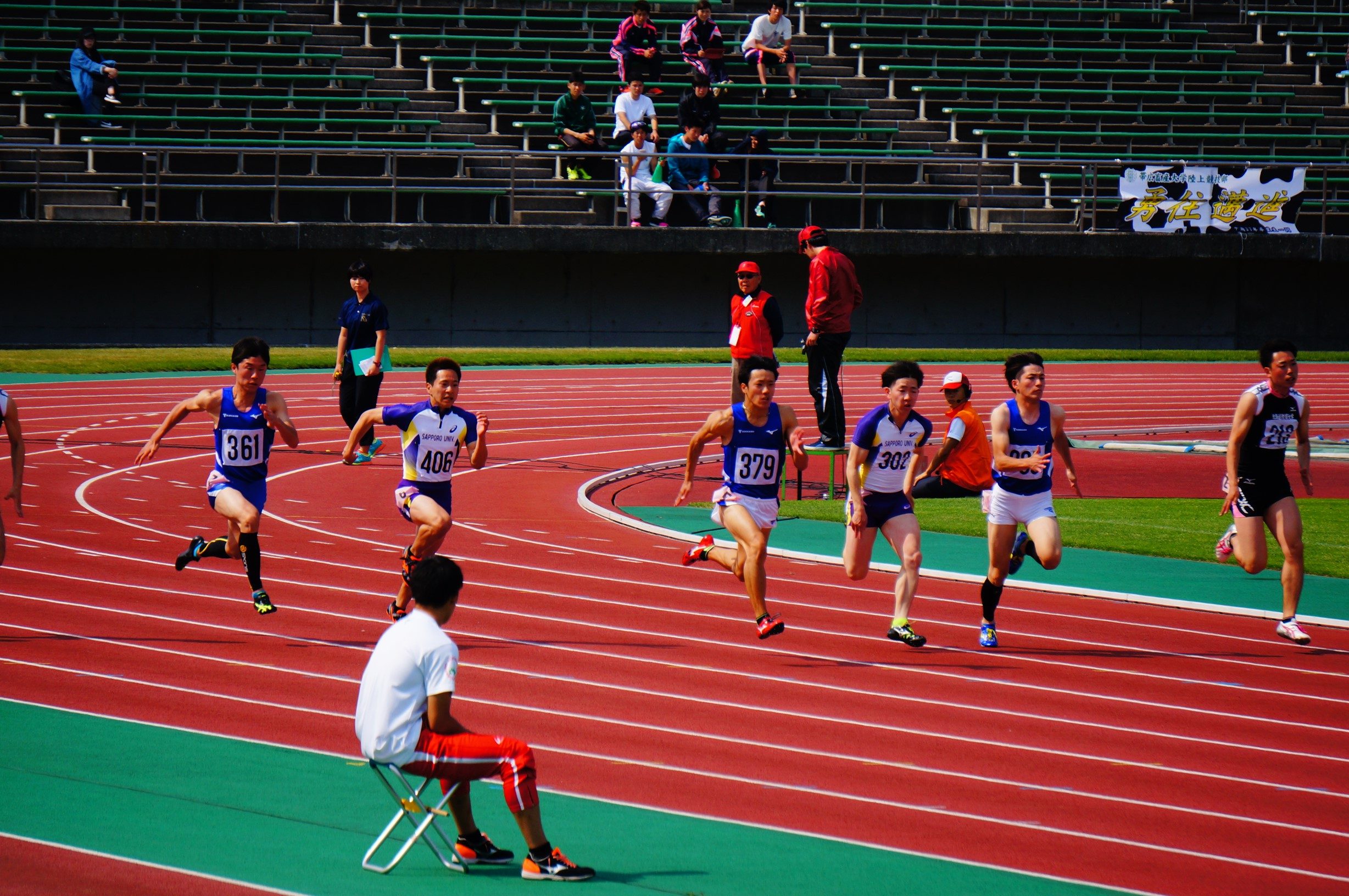 札幌キャンパスの陸上競技部男子が、6月1日から3日まで札幌市厚別公園陸上競技場で行われた北海道学生陸上競技対校選手権大会で、2年連続の総合優勝を果たしました。今大会は、100mで川本怜平選手(国際文化学部4年次生)が優勝、2位に赤神有哉選手(同1年次生)、3位に竹山将太選手(同4年次生)が入り、表彰台を独占しました。200mでも川本選手が、400mでは吉田達也選手(同2年次生)が優勝したほか、4×100mリレー、4×400mリレーでも頂点に立つなど、短距離チームの選手が圧巻の成績を残しました。また、跳躍チームも三段跳びで野村錬選手(同3年次生)、 竹村柾人選手 (同) 、小山竜司選手 (同1年次生)が表彰台を独占。走り高跳びでも久我洸士郎選手 (同4年次生)が頂点に立つなど、数多くの選手が実力を発揮。見事に栄冠を勝ち取りました。