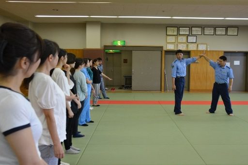 6月12日と13日に伊勢原キャンパス2号館の柔道場・トレーニングセンターで、医学部付属病院と本キャンパスの教職員を対象とした「護身術教室」を開催しました。防犯対策に関する意識を高めるとともに暴漢などから身を守る方法を学ぼうと、伊勢原警察署の協力を得て2009年度から毎年実施しているものです。女性を中心に、看護師や臨床検査技師、薬剤師、栄養士、付属本田記念幼稚園の職員ら多数が参加しました。