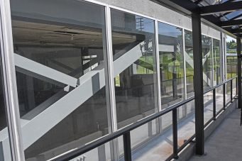 1号館には事務部署の各部屋をはじめ、教室や図書館、コンビニエンスストアなどがあり、学生たちのキャンパスライフの中心といえる建物でした。地震を引き起こした断層の上に建っているため、耐震補強工事の入っていなかった部分を中心に大きく損壊しましたが、今回の整備でY字型校舎の各翼を切り離すとともに倒壊を防ぐ補強工事を実施。安全確保のため建物内には立ち入れませんが、周辺を通路で囲み、大きくとられたガラス窓から特に被害の大きかった阿蘇事務課の部屋の状況を見学できるようになっています。また、建物の裏庭に表出した断層も風雨で崩れることのないよう樹脂で固めるとともに屋根が取り付けられ、地震の規模の大きさを目で確かめられます。各所には地震の規模や被害状況を説明するサインボードも設置されています。今回はこの2カ所の公開となりましたが、今後は隣接するグラウンド部分に駐車場と展示室、防災やレクリエーションに活用できる広場なども設けられる計画です。