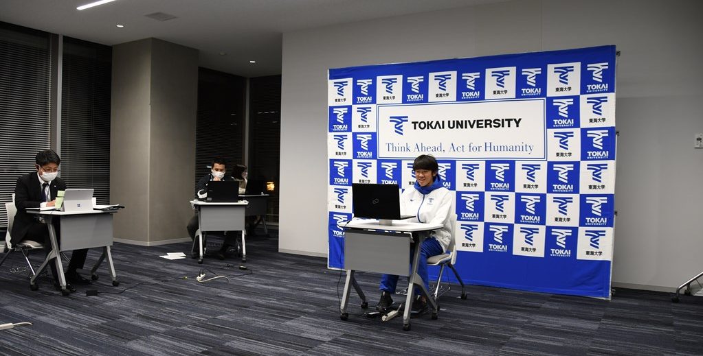 例年は、湘南キャンパスの会場に記者を招いて会見を行ってきましたが、今回は新型コロナウイルス感染症拡大の影響に鑑み、事前に質問を受け付けてその回答を配付するとともに、本キャンパス19号館の会場からWEBビデオ会議システム「Zoom」を使って質疑応答を配信しました。
