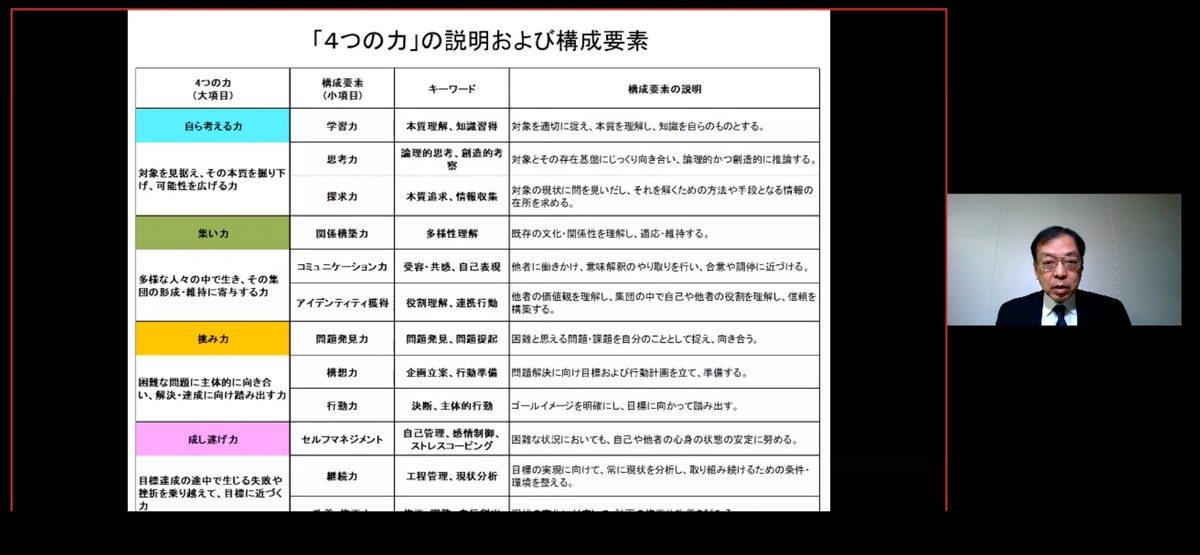 また、土屋所長は、『アドミッション・ポリシーとディプロマ・ポリシーへの展開』について語り、「コロナ禍における学生指導には大変な面もあるが、その中でも適切な学生とのかかわりがディプロマ・ポリシーの実現に大きな影響がある。学生からは学生間の交流を求める声も多く、それがコンピテンシーの伸長にもつながると考えられます」と強調。「教員と学生のかかわり、学生間のかかわりなど各学部・学科で検討していくことが大切」と呼びかけました。