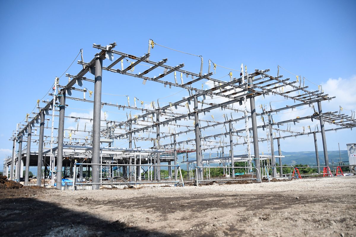 阿蘇くまもと空港とは反対側にあたる南側の門の右手に建設が進む「食品加工教育実習棟」。2棟並びで建てられるこの施設は、農学部のすべての学生が実習で使用する予定です。