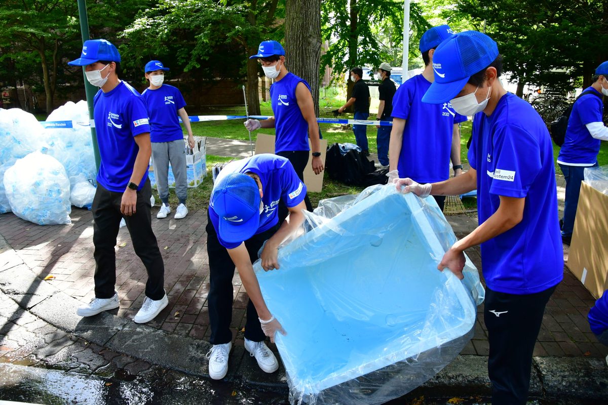 国際文化学部地域創造学科の学生が、8月28日に札幌市内で開催された北海道マラソン2022でボランティアを務めました。本学科で開講する「地域創造フィールドワークA」の一環として実施したものです。この授業ではマラソン大会運営の裏方を経験し、競技者の気持ちを理解するとともに、選手を支える充足感を得ることで今後の学生生活や将来におけるスポーツとの向き合い方を考えるきっかけとすることを目的としています。新型コロナの影響で3年ぶりの開催となった今回の北海道マラソンに向けて、大会オフィシャルウェアパートナーで、スイス発のスポーツブランド「On(オン)」とも連携。6月には札幌校舎でオンジャパン代表の駒田博紀氏と、湘南校舎の陸上競技部駅伝チーム出身で同社の陸上競技チーム「On Athletic Club」に所属する阪口竜平選手(体育学部2019年度卒業)による講演も実施。同社の企業理念や社会貢献活動、プロアスリートの仕事の社会的意義などを聞き、学びを深めてきました。