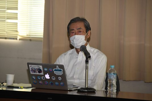 海洋研究所の平朝彦所長が9月16日に、静岡県総合研修所もくせい会館で開催された静岡県立大学グローバル地域センター自然災害研究部門の「第3回研究会」で講演しました。2016年に設置された「地震予知部門」は2022年から「自然災害研究部門」に改組され、県民の防災意識の向上のために、地震に加え津波、火山など自然災害全般に関する調査・研究の成果を発信しています。研究会はオンラインでも配信され、約20名が聴講しました。