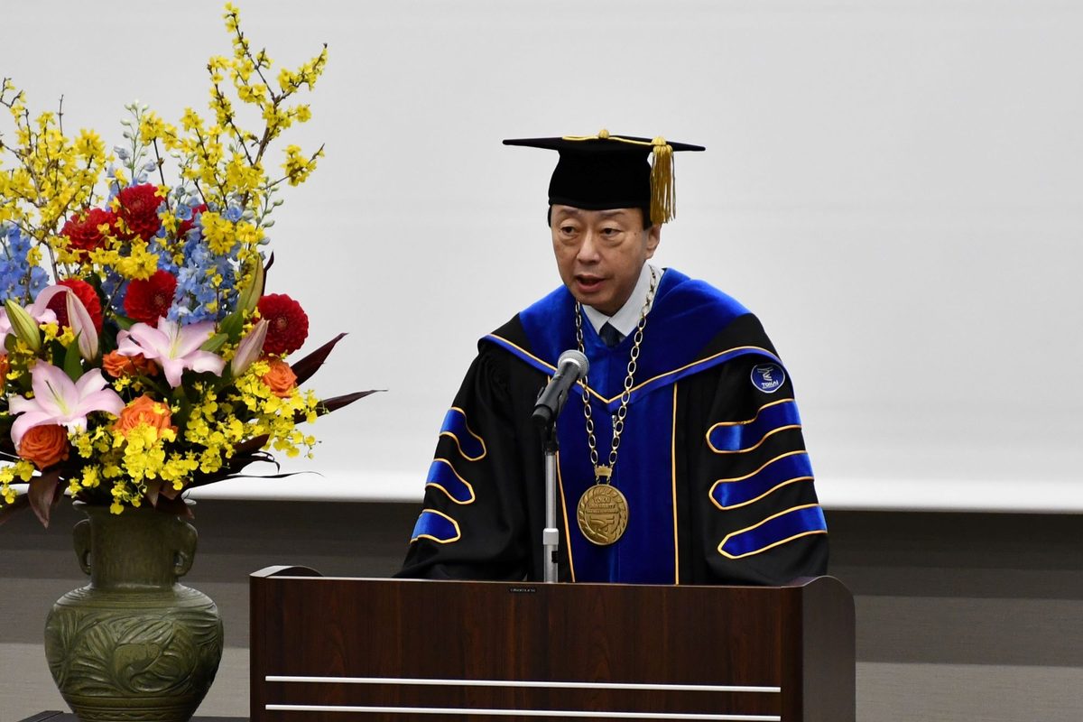 大学院生を対象とした24日の式では、山田清志学長から学位記を、医学研究科の小林広幸研究科長と健康科学研究科の西村昌記研究科長からメダルを授与しました。式辞では、山田学長が英語でスピーチ。「本学大学院を修了した誇りと自信をもって、社会をリードする人材になってください」と語りかけました。医学研究科博士課程の修了生は、「臨床医として、基礎研究の重要性を再認識しました。今後も患者さんの治療に役立つ研究を続けたい」と話していました。
