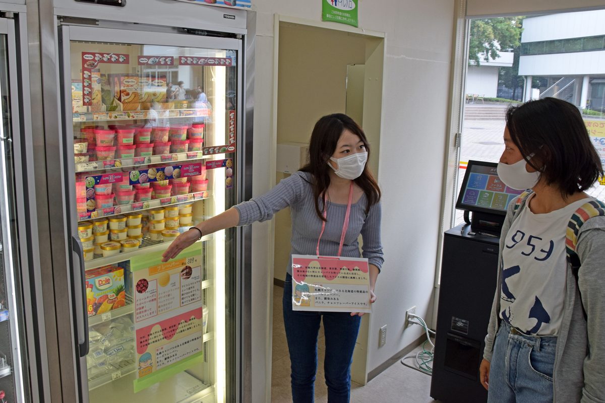 販売を開始した26日から1週間はメンバーが店頭に立ち、チラシを配りながら商品をアピールしました。河部莉子さん(同)は、「なかなかチラシを受け取ってもらえず、商品を買ってもらうことの大変さを実感しました。一方で自分たちの思いを実現させた商品を目の前で手に取ってもらえて、やりがいを感じることも多くありました」と充実した表情で語りました。サークル長を務める福地雄大さん(大学院農学研究科1年次生)は、「アイスは今後、東京や湘南、静岡と各キャンパスに関連する味を探していきたいと考えています。サークル全体としても、今後も企業や地域の方々と連携しながらさまざまな新商品開発に取り組んでいきたいと考えています。このような活動に興味のある新メンバーも随時募集しています」と話しています。