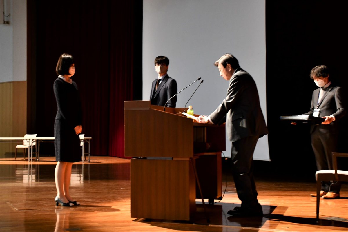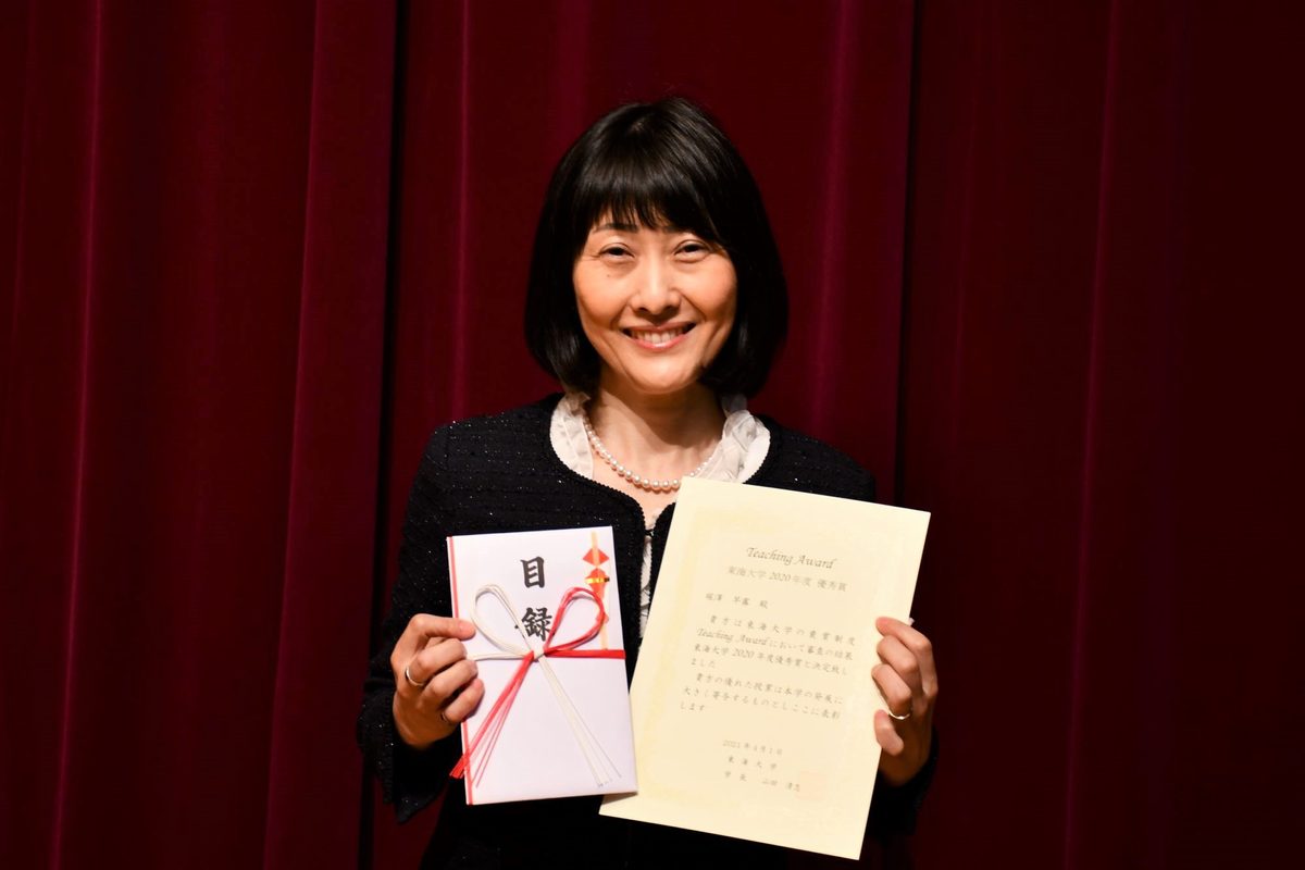 理系教育センター(情報教育センター)の堀澤早霧講師が「2020年度ティーチング・アワード」の優秀賞に選ばれ、4月1日に湘南キャンパスで行われた授賞式で山田清志学長から賞状と目録が授与されました。本学では教育の質向上を目指し、2002年度から優れた授業を行う教員らを「ティーチング・アワード」として顕彰しています。1年間の講義科目の授業を対象に行った学生による授業についてのアンケートなどの結果に基づき、大学運営本部を中心とした厳正な審査を経て学長により決定されるもので、2020年度は3名に優秀賞を授与しました。