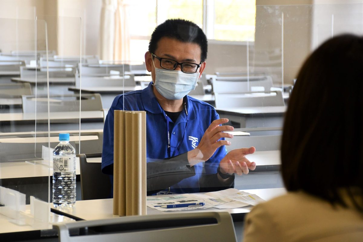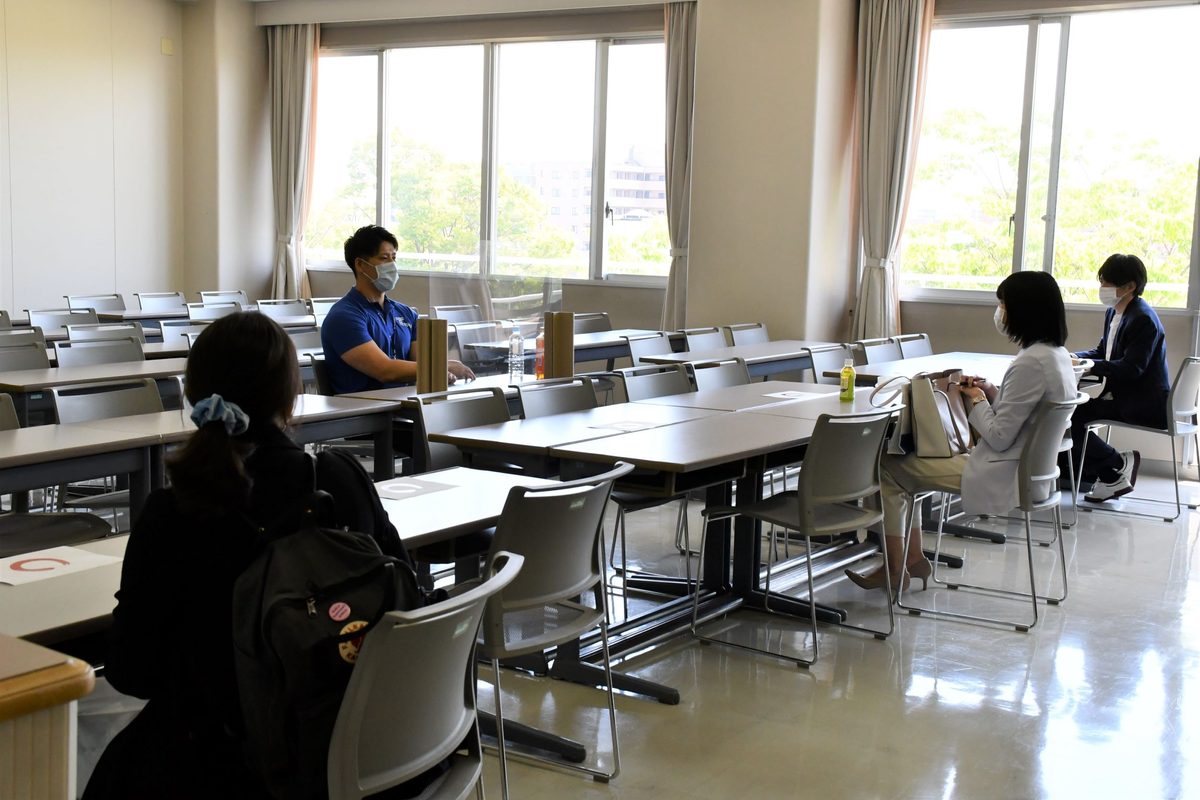 医学部医学科では4月11日(日)に伊勢原キャンパスで、一般編入学を希望する受験生を対象としたハイブリット式(対面型+オンライン型)相談会を開催しました。新型コロナウイルス感染症対策のため、対面型の会場では検温、手指消毒、マスク着用、三密回避を徹底し、職員による学科及び入試制度に関する説明をはじめ、編入生による「学生トークライブ」や「バーチャルキャンパスツアー」などを実施。オンラインで企画をライブ配信し、約60名が参加しました。