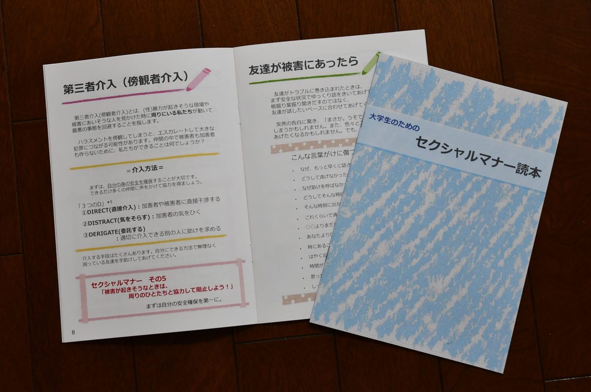 小冊子では、「性的同意」「デートDV」「性暴力の種類」「第3者介入」などについて解説するとともに、友人や先輩後輩、交際相手らと性的に対等で健全な関係を築くためのポイントを、「セクシャルマナー」として紹介。各キャンパスの相談窓口をはじめ、各都道府県に設置されている「性犯罪・性暴力被害者のためのワンストップ支援センター」についても掲載しています。