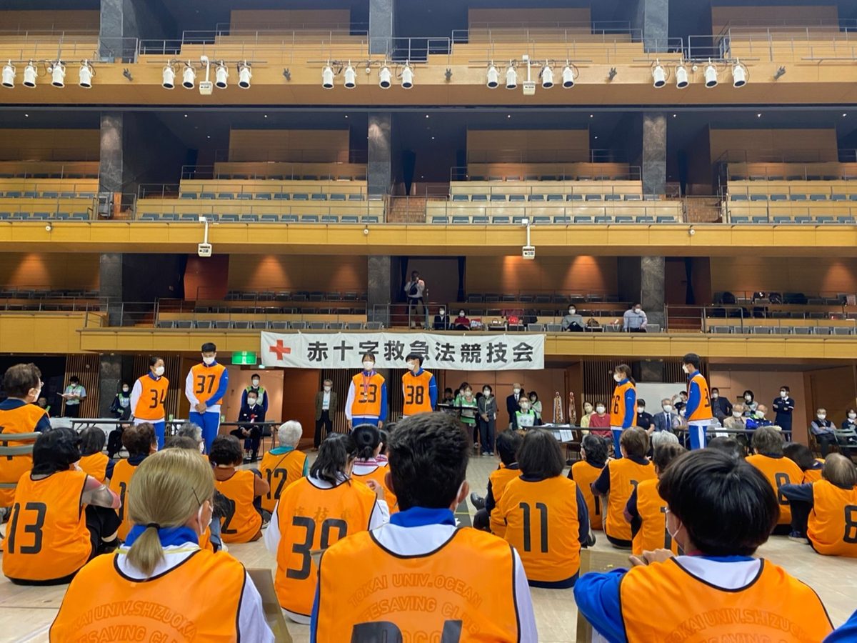 日本赤十字社静岡支部が主催する本大会は、毎年静岡県の日本赤十字社の講習を受講した団体や学校を対象に実施しておりましたが、新型コロナウイルスの影響で2019年度から開催を中止しておりました。3年ぶりとなる今大会に、135名の競技者が参加しました。
