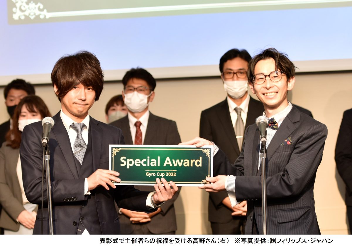医学部付属病院診療技術部放射線技術科の高野晋さんが、10月15日に都内で開催された株式会社フィリップス・ジャパン主催の「フィリップス MRIユーザーズミーティング全国大会 Gyro Cup(ジャイロ・カップ)」に出場し、「Special Award(審査員特別賞)」を受賞しました。Gyro Cupは同社製MRI(磁気共鳴画像撮影装置)の撮像テクニックを競う大会で、隔年で開かれています。今回は50を超える応募があった中、高野さんは12名のファイナイストの一人としてプレゼンテーション審査に臨み、受賞を果たしました。
