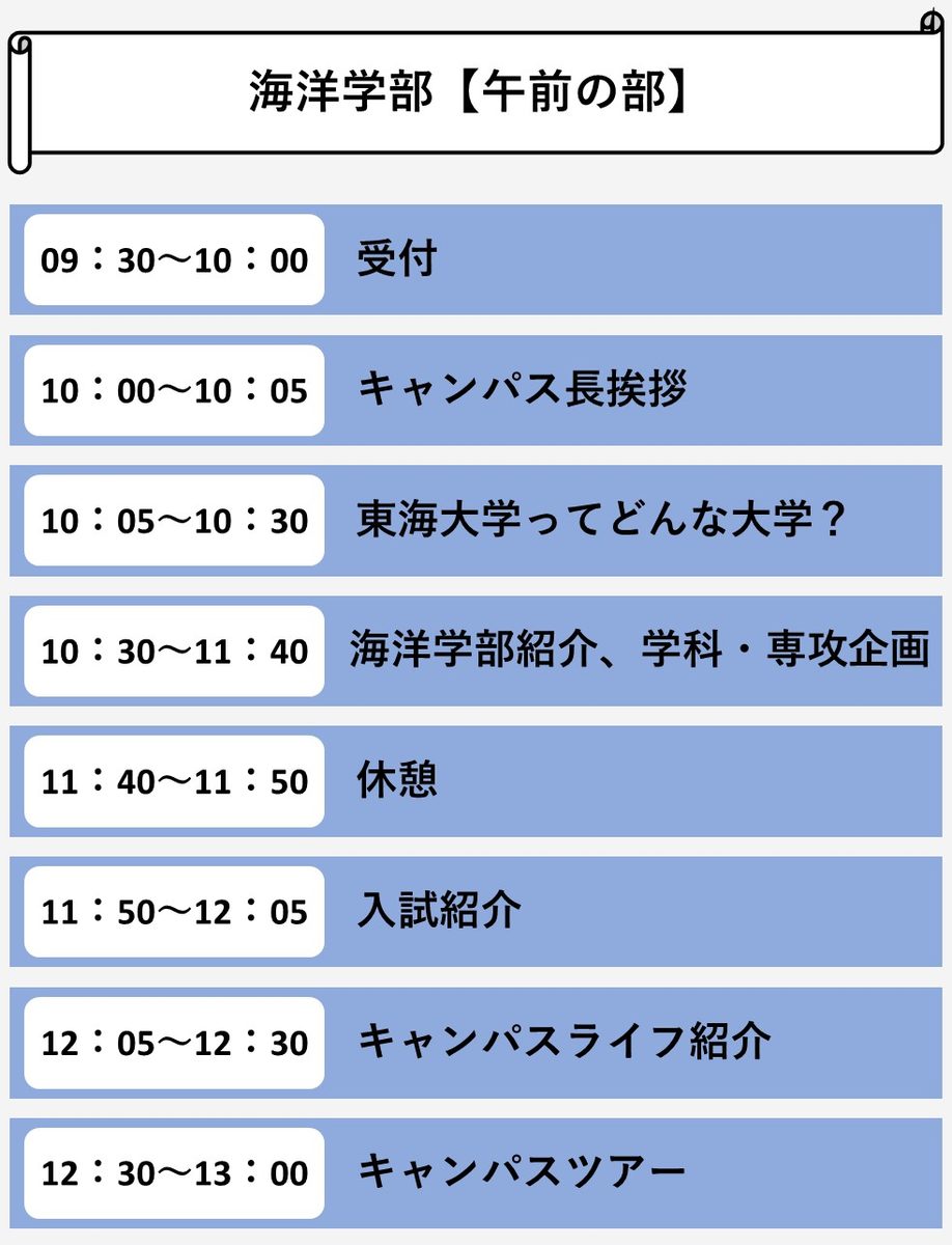 海洋学部 午前の部 10:00~13:00(受付9:30~10:00)
