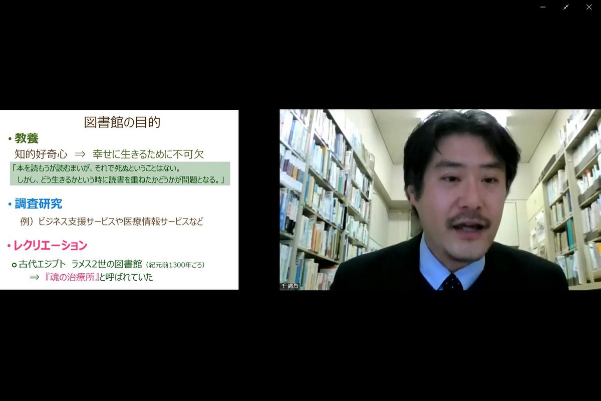 ティーチングクオリフィケーションセンターでは1月21日に、公開講演会「東日本大震災における被災図書館の支援活動~いわて高等教育コンソーシアムの活動を振り返って~」をオンラインで開催しました。今回は、2011年3月に発生した東日本大震災で被害を受けた岩手県の公共図書館の復旧支援活動に尽力し、現在は関東学院大学で教鞭をとる千錫烈氏を講師に、実際の支援活動や復興において図書館の果たすべき役割について講演いただきました。