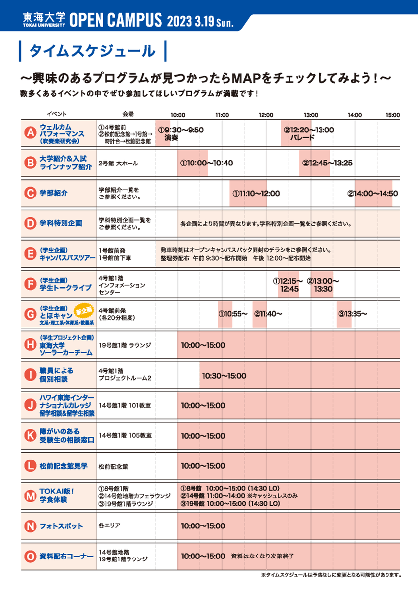 ※タイムスケジュールは予告なしに変更となる可能性があります。