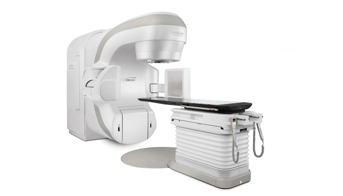 「TrueBeam放射線治療システム」は、がん組織に対して適量の放射線をピンポイントで照射し、高精度・短時間に治療する装置です。脳や頭頸部、肺、食道、肝細胞、直腸、前立腺などのがんをはじめ、乳がんや子宮頸がん、白血病などあらゆる部位のがんが対象になります。動く臓器を追うシステムが搭載されているため、患者は呼吸を止めるなどの負担なく治療を受けられます。