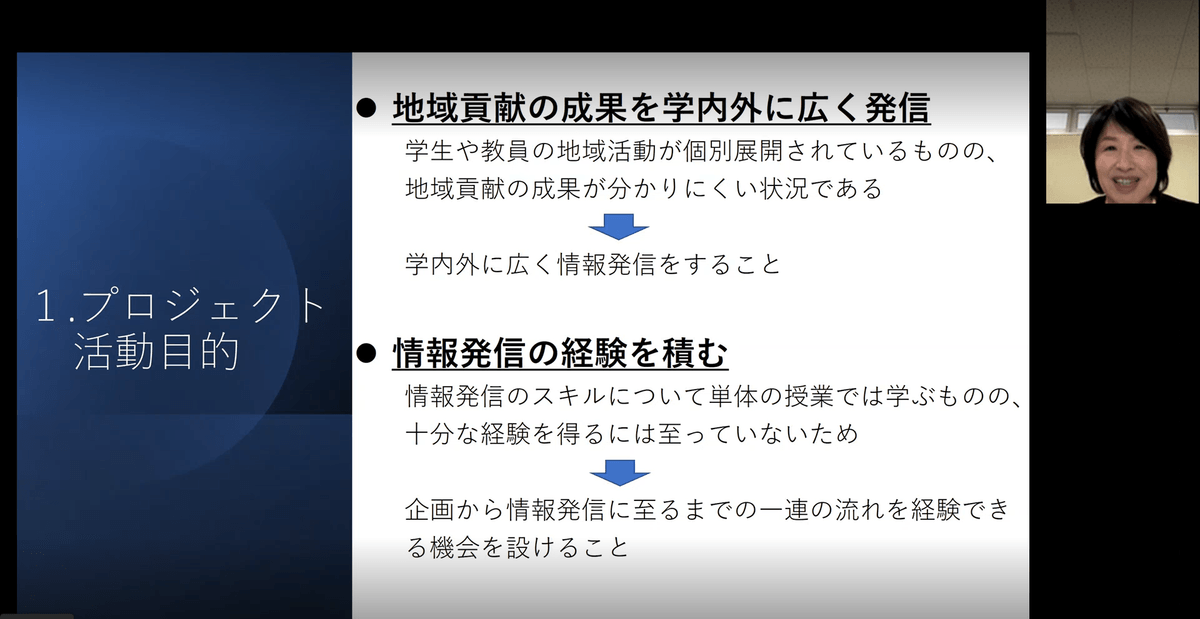 2022年度の「九州キャンパス教育活性化プロジェクト成果発表会」を、3月6日にオンラインで開催しました。九州キャンパスの各学部学科、農学教育実習センターの教職員が主体となり、地域社会に対して魅力ある教育活動の展開を推進することで、学生の学習効果の向上や地域社会で活躍する人材の育成につなげようと2008年度から2019年度まで、「九州キャンパス教育活動支援プログラム」として実施してきました。2020年度からは、「九州キャンパス教育活性化プロジェクト」として内容を刷新。本学が掲げる「Quality Of Life(QOL)の向上」に向けた行動目標の中の「4つの力を身につけた人材の輩出〔教育〕」および、「地域との連携、地域での活動等、地域の活性化につながる学生主体の取り組み」を踏まえた地域または世界で活躍する人材の育成を目指しています。今回の成果発表会では今年度採択を受けた「アグリ実学スキルアップ支援プログラム(略称:アグラップ)」と「地方創生チャンネル『仮称:TX(Tokai Transformation)チャンネル』を活用した文理融合型地域魅力開発プロジェクト」の2件について活動成果が報告されました。
