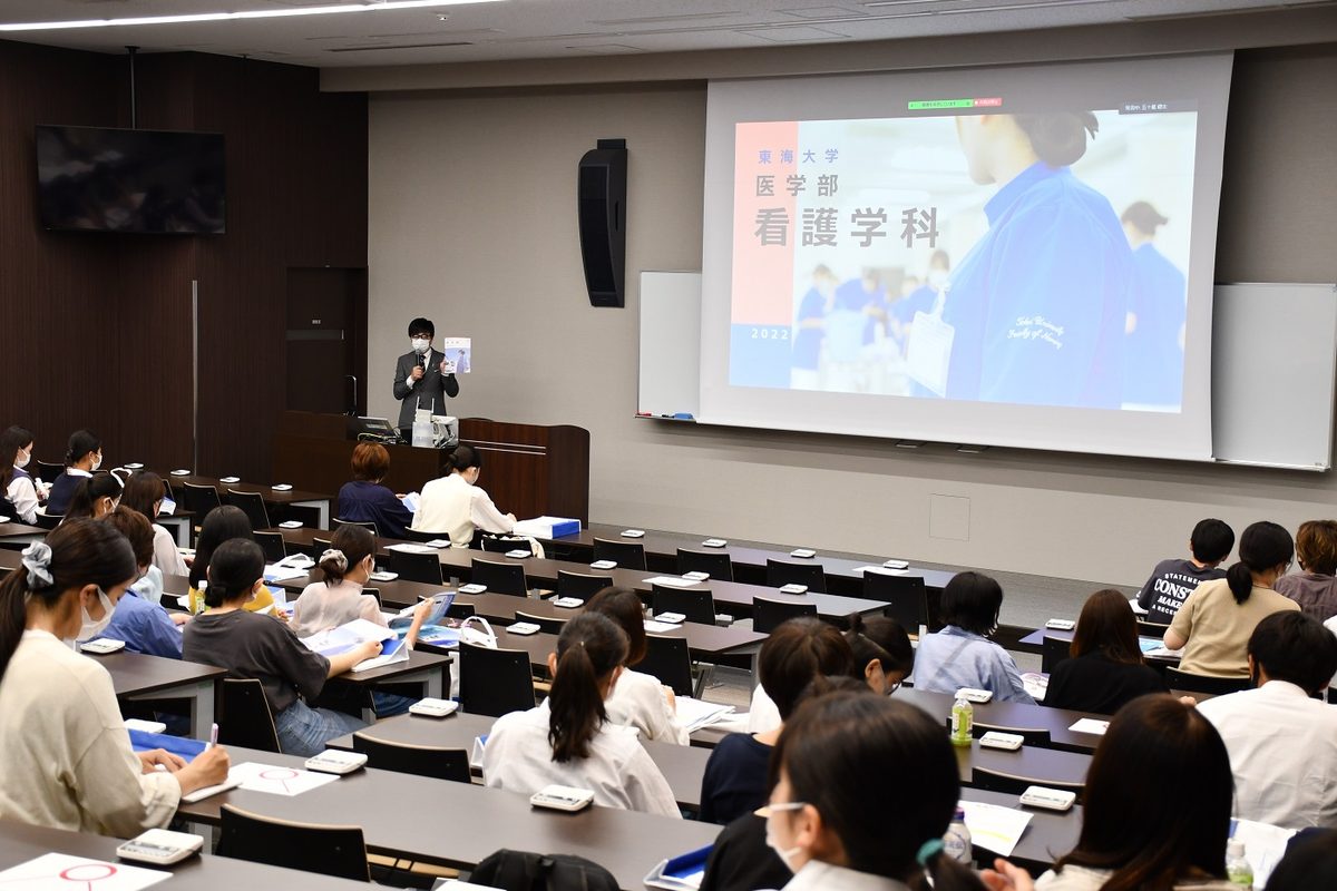 医学科に参加した高校生は、「受験勉強から面接対策まで、複数の先輩から具体的なアドバイスをいただき参考になりました。活気に満ちた雰囲気を感じました」とコメント。看護学科に参加した高校生は、「先生方も先輩もフレンドリーで温かく、安心して相談できました」と話していました。また、保護者からは、「コロナ禍でも感染対策を徹底して可能な限り対面による講義を行い、オンラインでも効果的な講義を工夫していることがわかりました。教職員の皆さんから教育に対する熱意が伝わってきました」といった声が聞かれました。