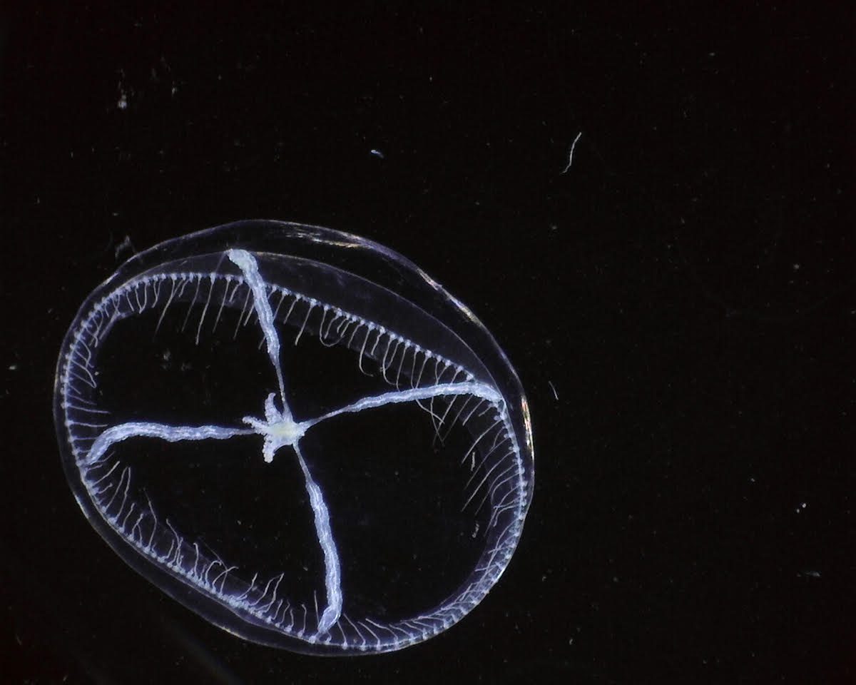 今回飯田さんが発見したクラゲは、ヒドロ虫綱のBlackfordia属の一種で、世界各地で繁殖が確認されている移入種として知られています。同種は現在B. manhattensis、B. virginica、B. polytentaculataの3種によって構成されており、これらは生殖腺の位置と形状、縁辺触手数、傘縁の黒点の有無によって区別されています。飯田さんは、ベトナムで初めて本属のクラゲの出現を確認。その個体の形態学的解析を行ったところ、触手数はこれまで報告されている種のどれとも一致せず、また、文献調査により同数の触手数を持つ個体はブラジルやメキシコ、インドでB.virginicaとして記録されていたことが判明しました。さらに、ミトコンドリアDNAを用いた分子系統解析の結果により、ベトナムのBlackfordiaは、ブラジルの種と遺伝的に同じ起源を持っていることや、他地域のB. virginicaとは遺伝的に異なることもわかりました。これらのことから、飯田さんは今回ベトナムで発見されたBlackfordiaが未知の種である可能性が示唆されるとまとめています。