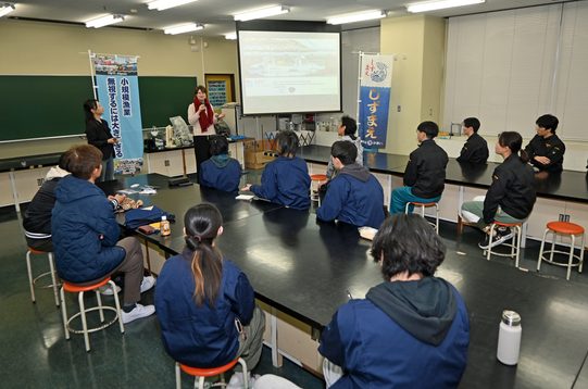 また、ショクザイの営業担当として学生たちをサポートした東邦夫さんは、「学生たちの理想とするレシピと販売コストのバランスをとった商品を実現するため、サイズの変更や臭み消しなどの改良を繰り返しました。長い時間をかけて学生たちと切磋琢磨してきたかいもあり、いい商品ができたと思います」と話し、天神屋販売部長兼経営企画室店舗支援部マネージャーの小板聡明さんは、「地元で学ぶ学生のために何かできればという思いから、この企画に協力しました。学生が店頭販売するという、いつもと違う環境にお客さまも従業員も活気づいています。商品開発プロジェクトの学生たちには、今後もさまざまな商品を開発してもらい、毎年このような店頭販売ができれば」と期待を込めました。 指導する水産学科食品科学専攻の後藤慶一教授は、「食品を作って終わりではなく、消費者の認知を深め、商品として定番化することで真の成功となると考えています。プロジェクト活動を通じて、学生たちには自由に商品を開発する楽しさだけにとどまることなく、実際に店頭での販売に至るまでのさまざまな課題に向き合う経験を積むことで、社会で通用する力を身に付けてもらいたい」と話しています。
