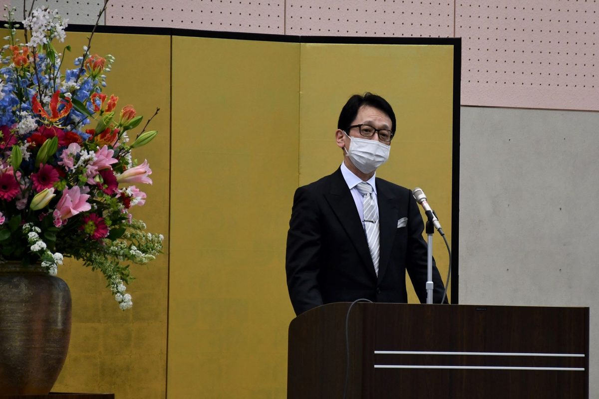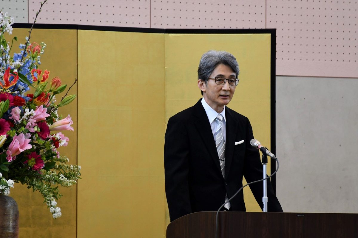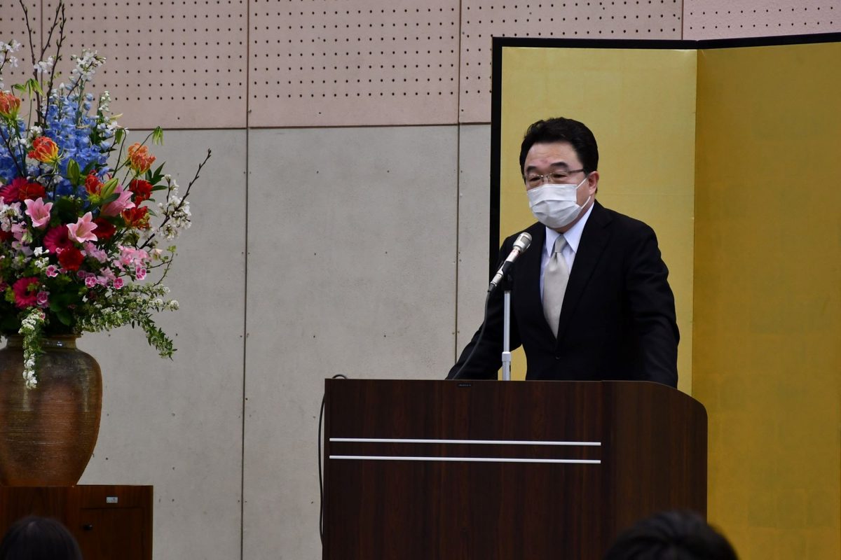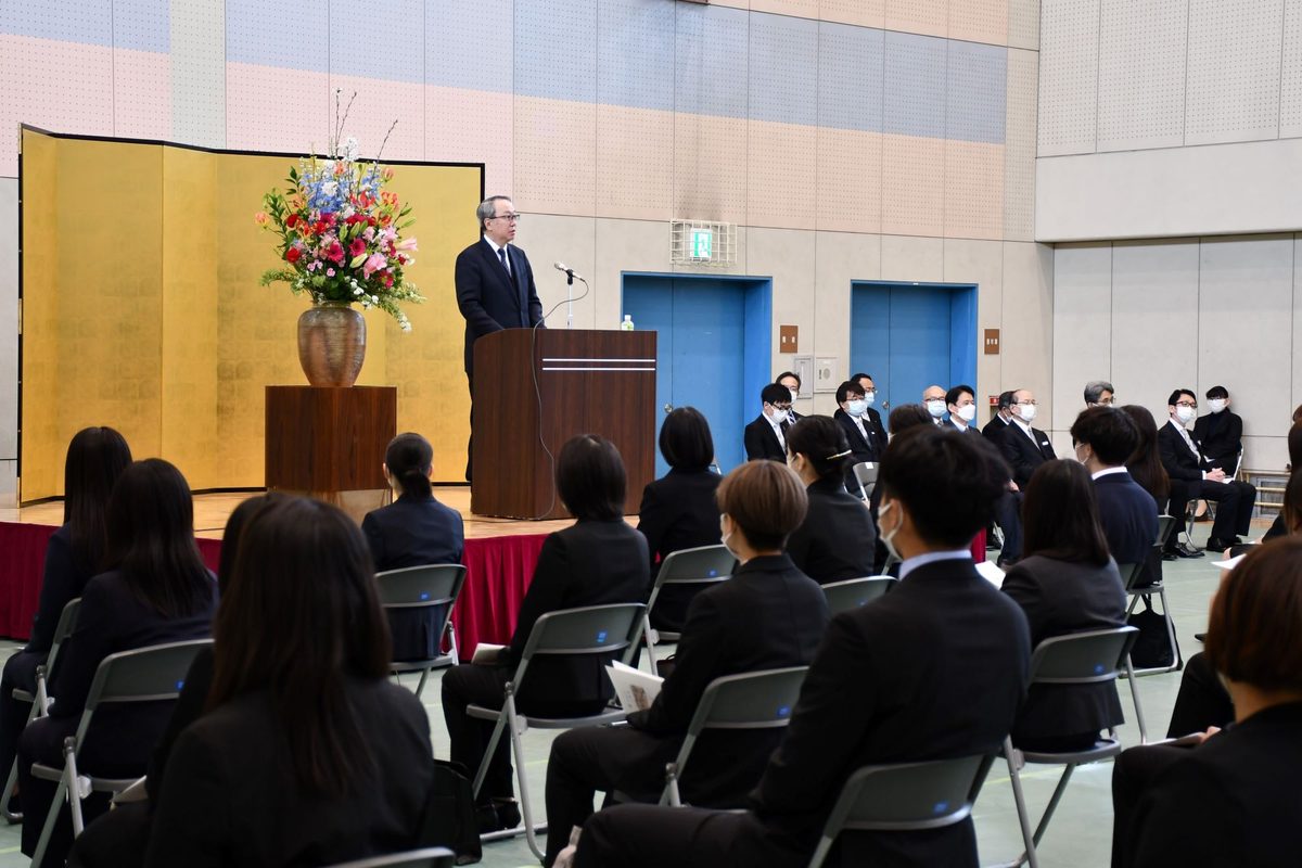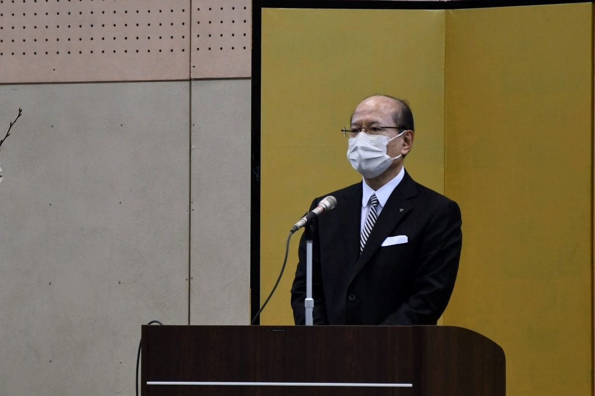 松前義昭学長は両式に登壇し、入学許可を宣言。式辞では、学園の創立者・松前重義博士が学園の源泉である望星学塾に掲げた「若き日に汝の」から始まる「思想を培え」「体躯を養え」「知能を磨け」「希望を星につなげ」の4つの言葉を紹介し、「皆さんにとりわけ希望するのは“思想を培う”ことです。世の中でおきている一つひとつの出来事に思いを寄せ、人々の考えを理解しようと努め、そこに自分の考えを加えて自らの世界観を構築してほしい。多様な知識や経験を持った先生や先輩、友人の話を聞いて自分のものにすることが思想を培うための重要な要素となります。高い目的と目標を持って学生生活を送ってください」と語りかけました。